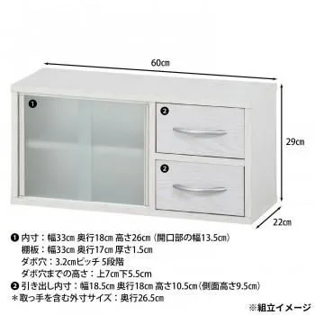 商品名:カウンター上収納ラック 60幅 オークWH 52284