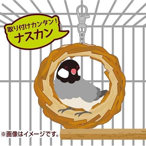 ケージ内に簡単に吊り下げられる、小鳥のための楽しいおもちゃ「エクセル ゆらかじリース(Sサイズ)」です。