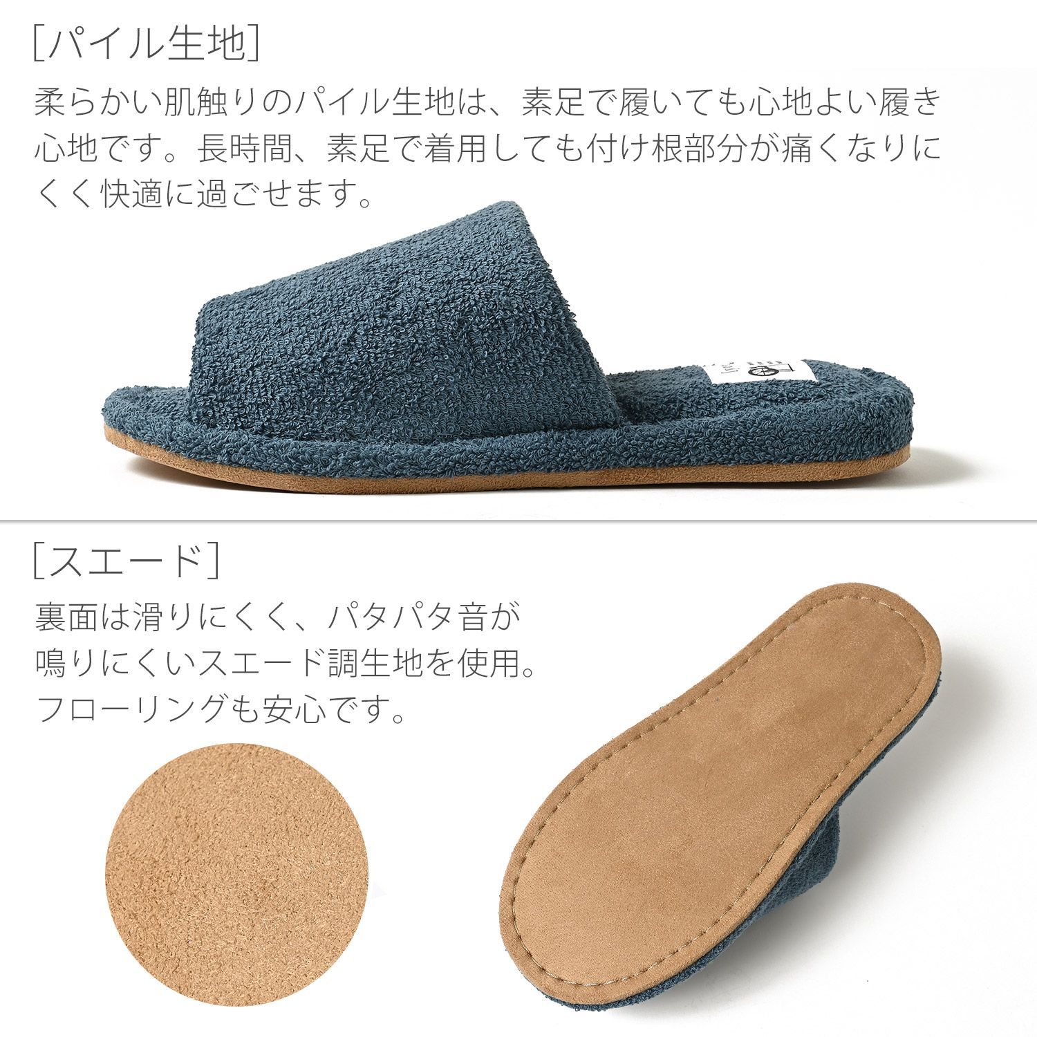 ●商品名 前あき パイル ルームシューズ
