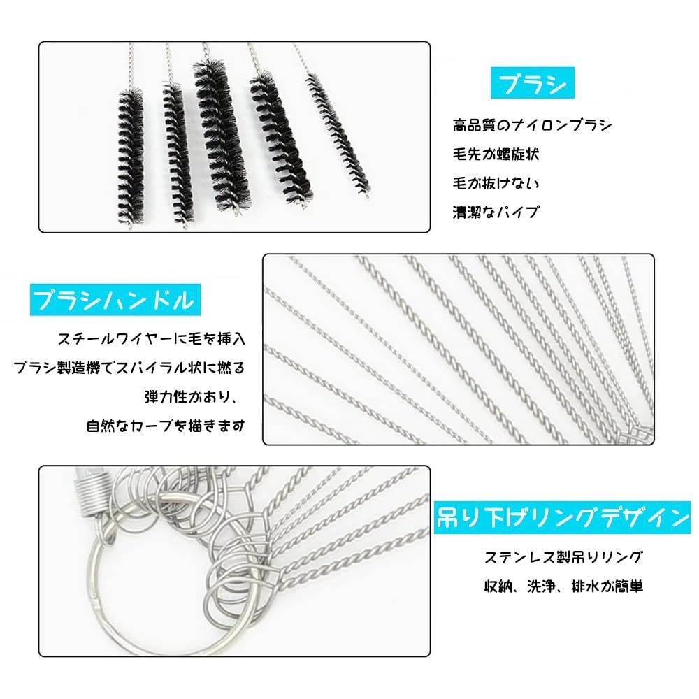 【上質な素材】ストロー洗浄ブラシは304ステンレス鋼と高密度ナイロン毛のフィラメントが精製され、良好な柔軟性、毛の損失がありません。ステンレス鋼のワイヤー巻取り、錆びない、ブラシの柄は柔軟で、変形しにくい。 3.