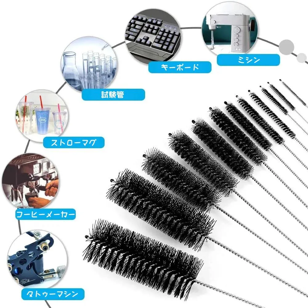 【10種類のサイズ】多機能クリーニングブラシ長さ210mm、ブラシヘッド直径仕様: 3mm 4mm 5mm 6mm 8mm 10mm 12mm 16mm 20mm 24mm。 2.