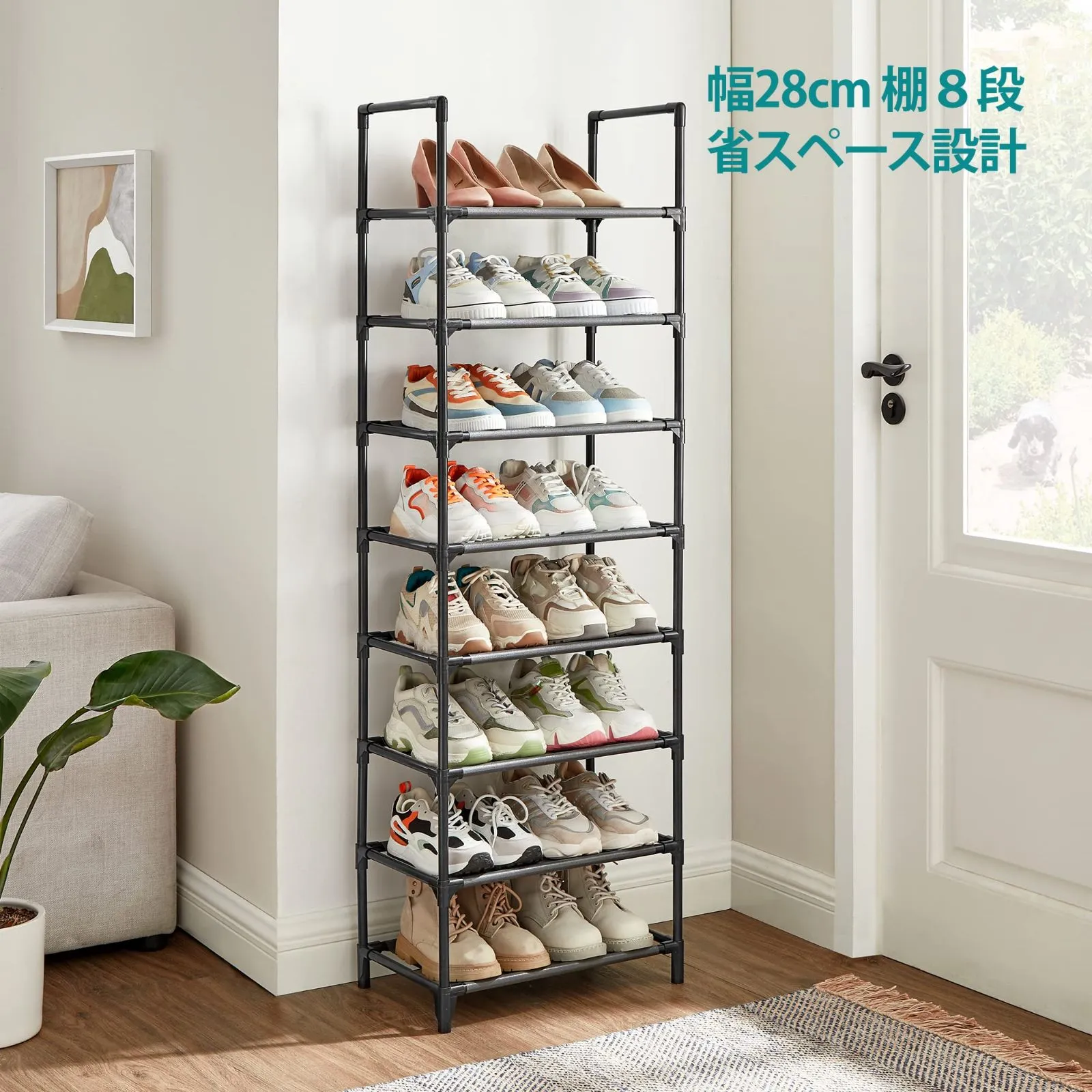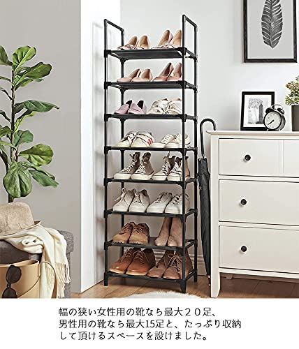 SONGMICS シューズラック 8段 靴棚 下駄箱 省スペース 分割可玄関すっきり 奥行スリム28cm 玄関に靴を効率収納 収納目安16-20足 LSR24BK
