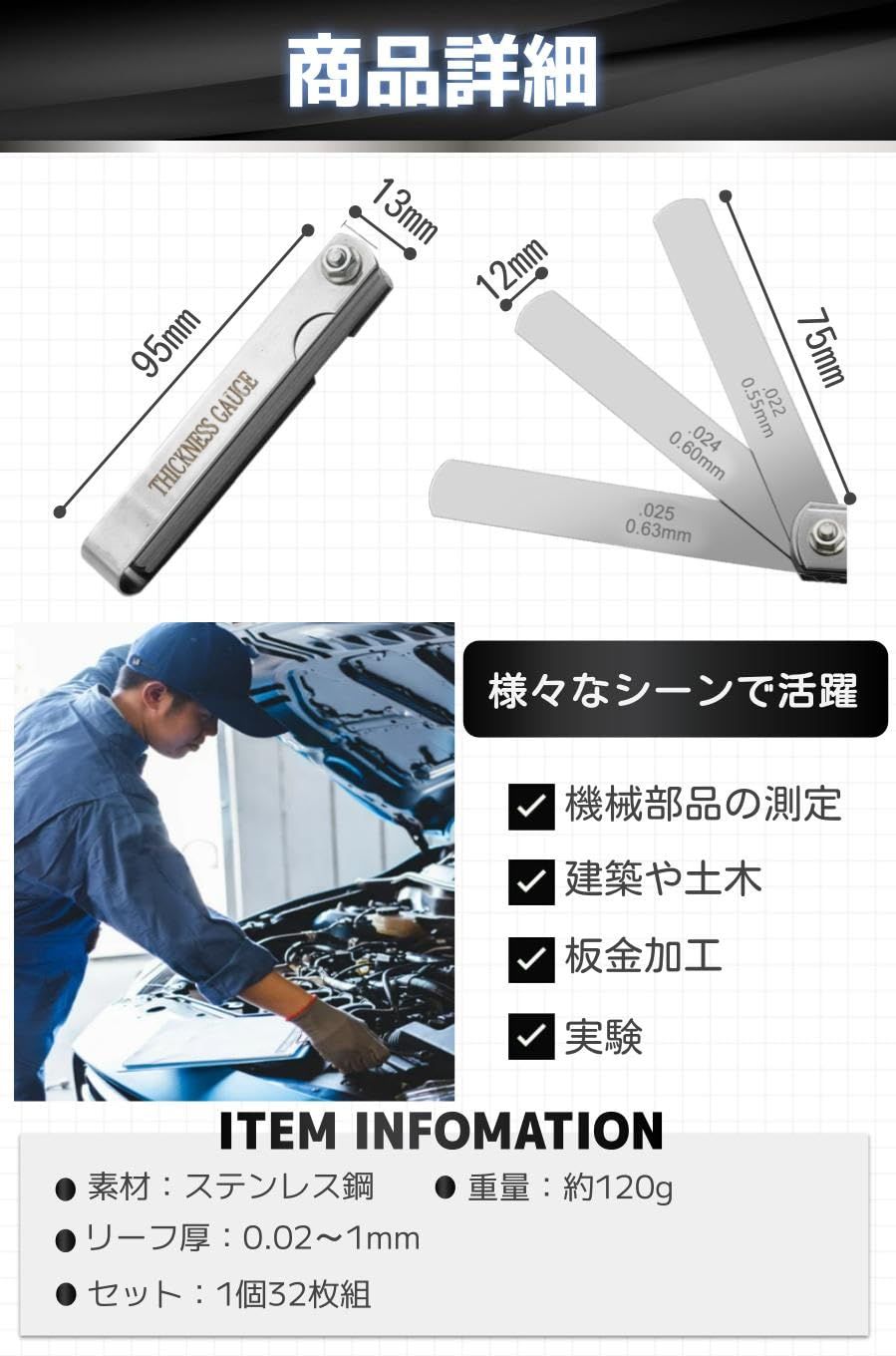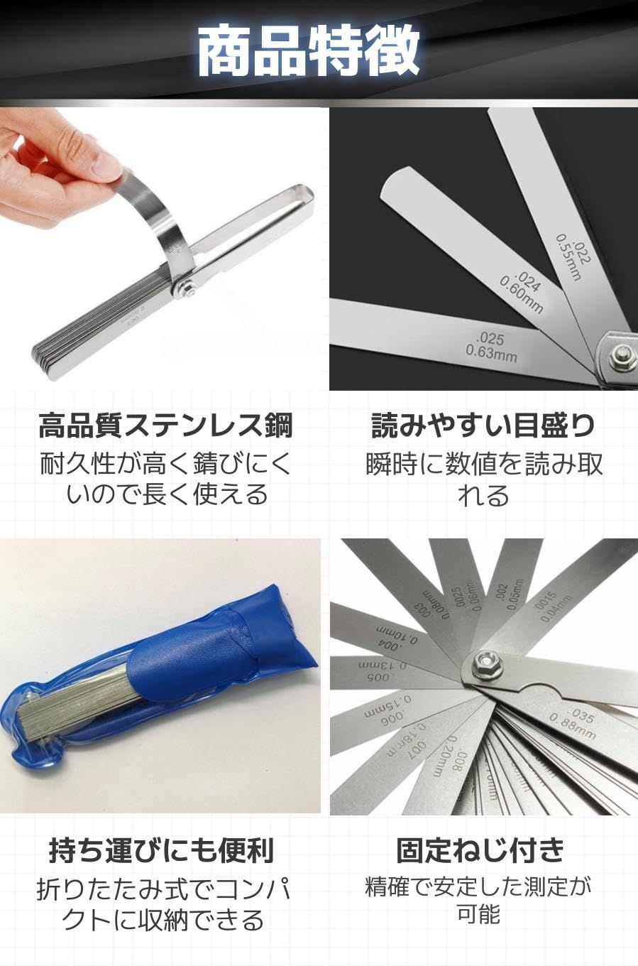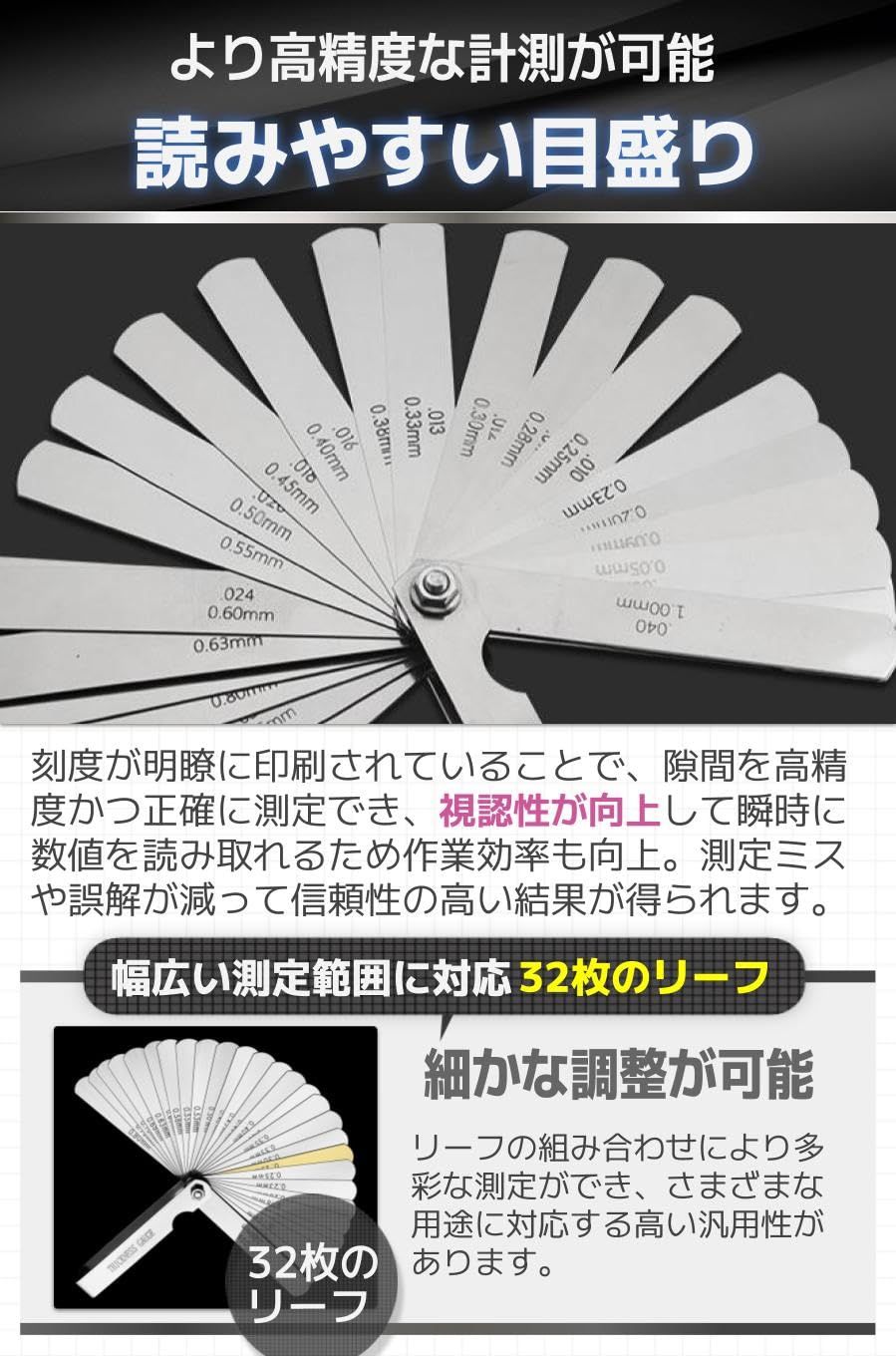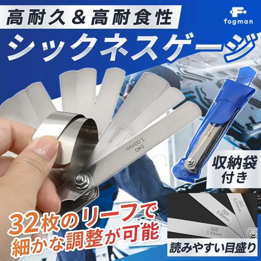 fogman シックネスゲージ 隙間ゲージ ゲージ 検査 バイク エンジン 収納袋付き 32枚組