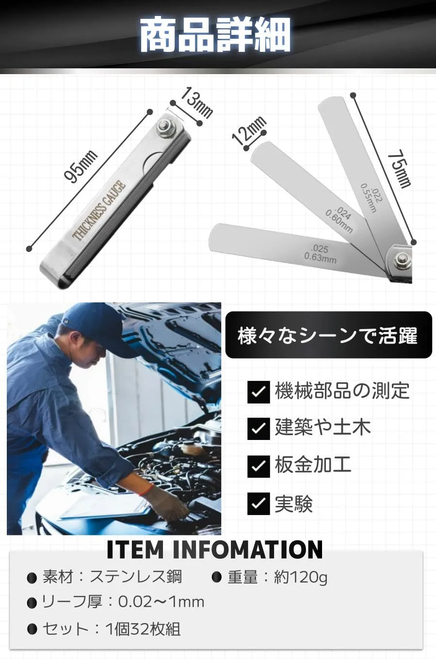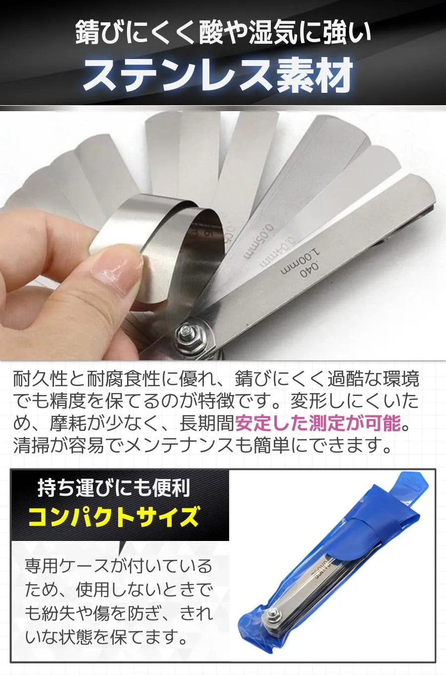 【人気商品】検査 ゲージ バイク 隙間ゲージ エンジン シックネスゲージ 収納袋付き fogman 32枚組