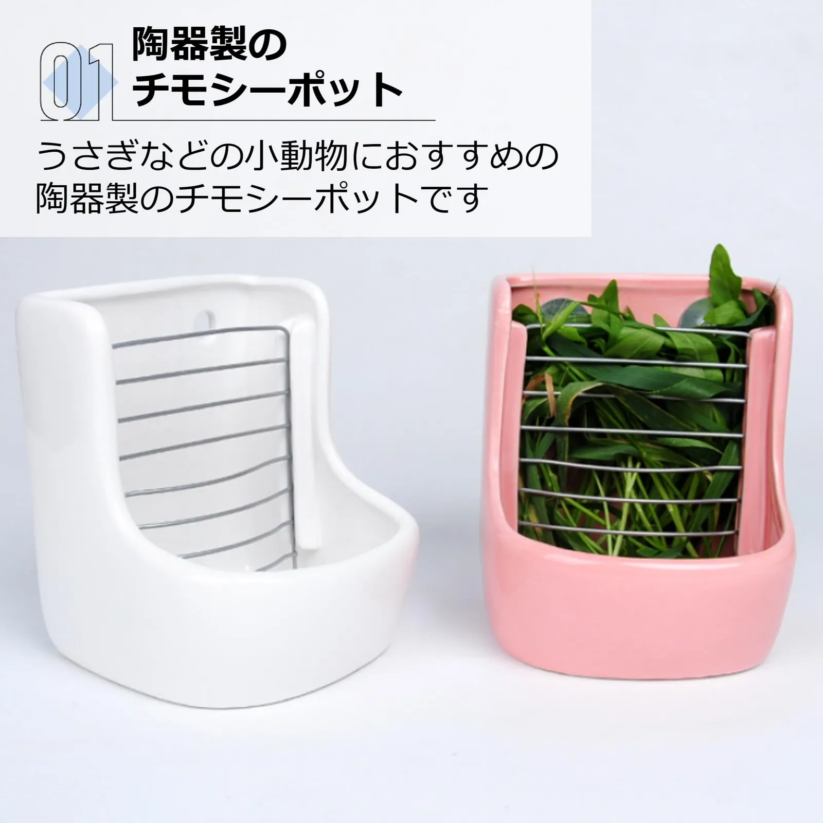 【陶器製のチモシーポット】うさぎなどの小動物におすすめの陶器製のチモシーポットです。テグーやモルモット、フェレットなどにも使える商品です。
