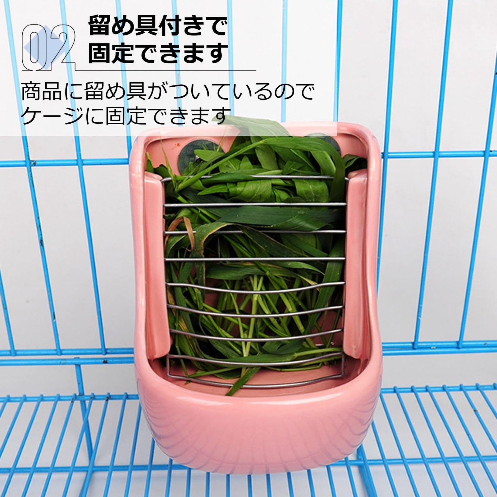 【留め具付きで固定できます◎】商品に留め具がついているのでケージに固定できます。金網があるので餌も飛び出しにくいです。