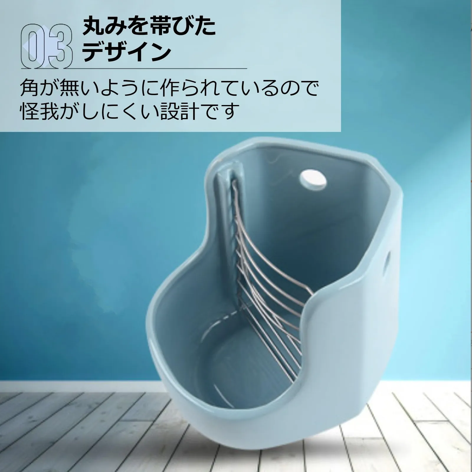【丸みを帯びたデザイン】角が無いように作られているので怪我がしにくい設計です。丸洗いしやすく、長期的にお使いいただけます。