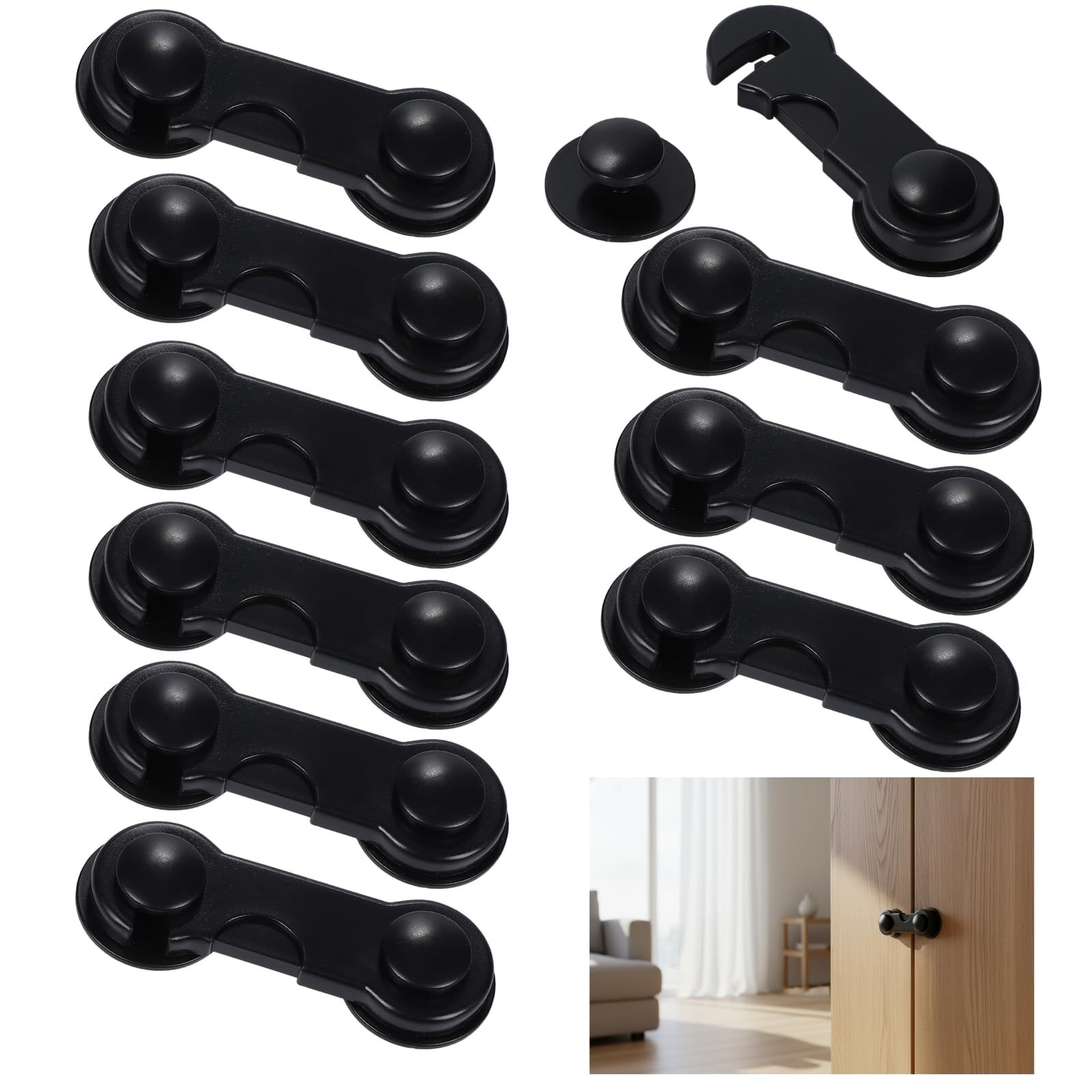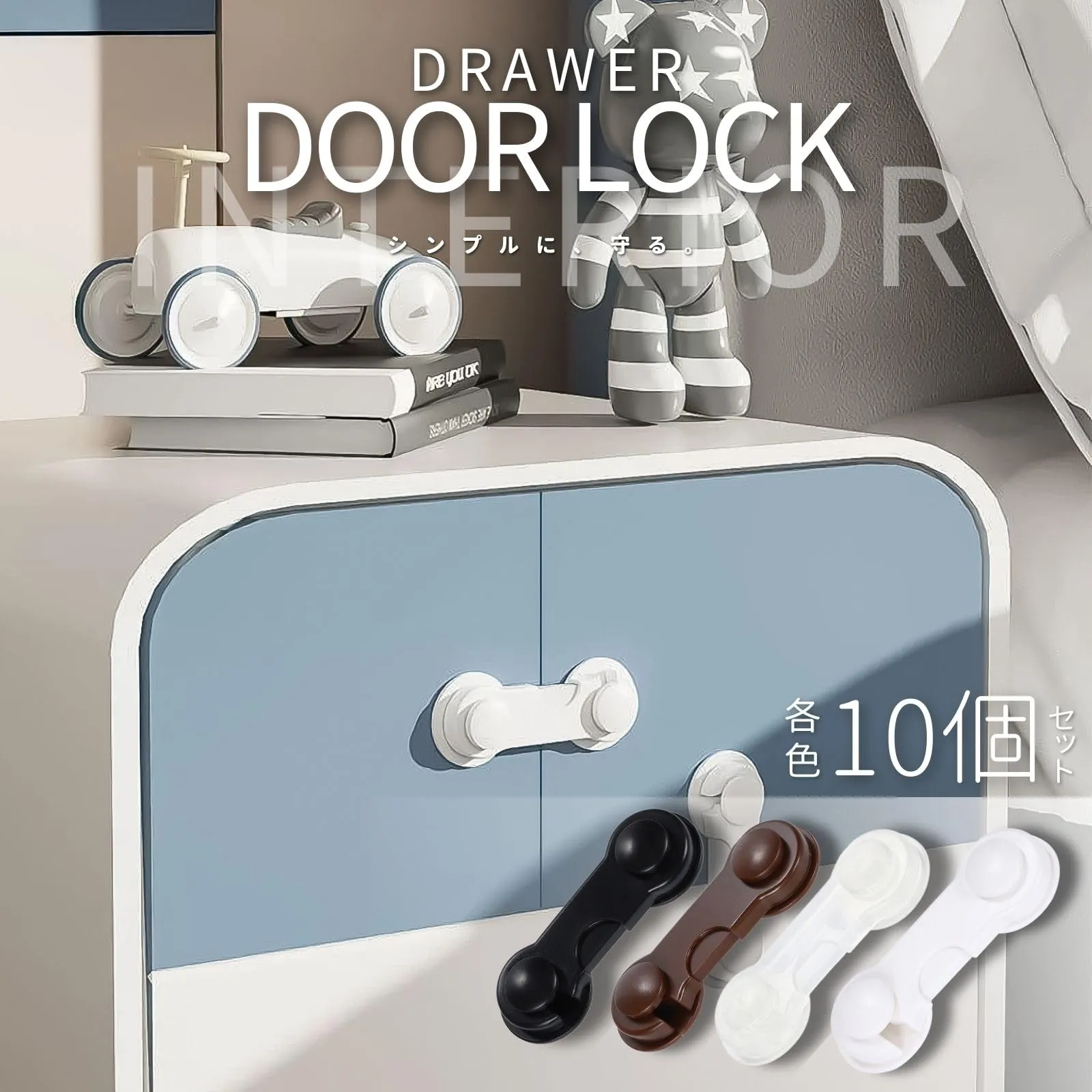 ドア チャイルド ロック 引き出し 扉 引き戸 固定 地震 ベビー 赤ちゃん 子供 安全 対策 耐震 ストッパー ブラック 10個 セット