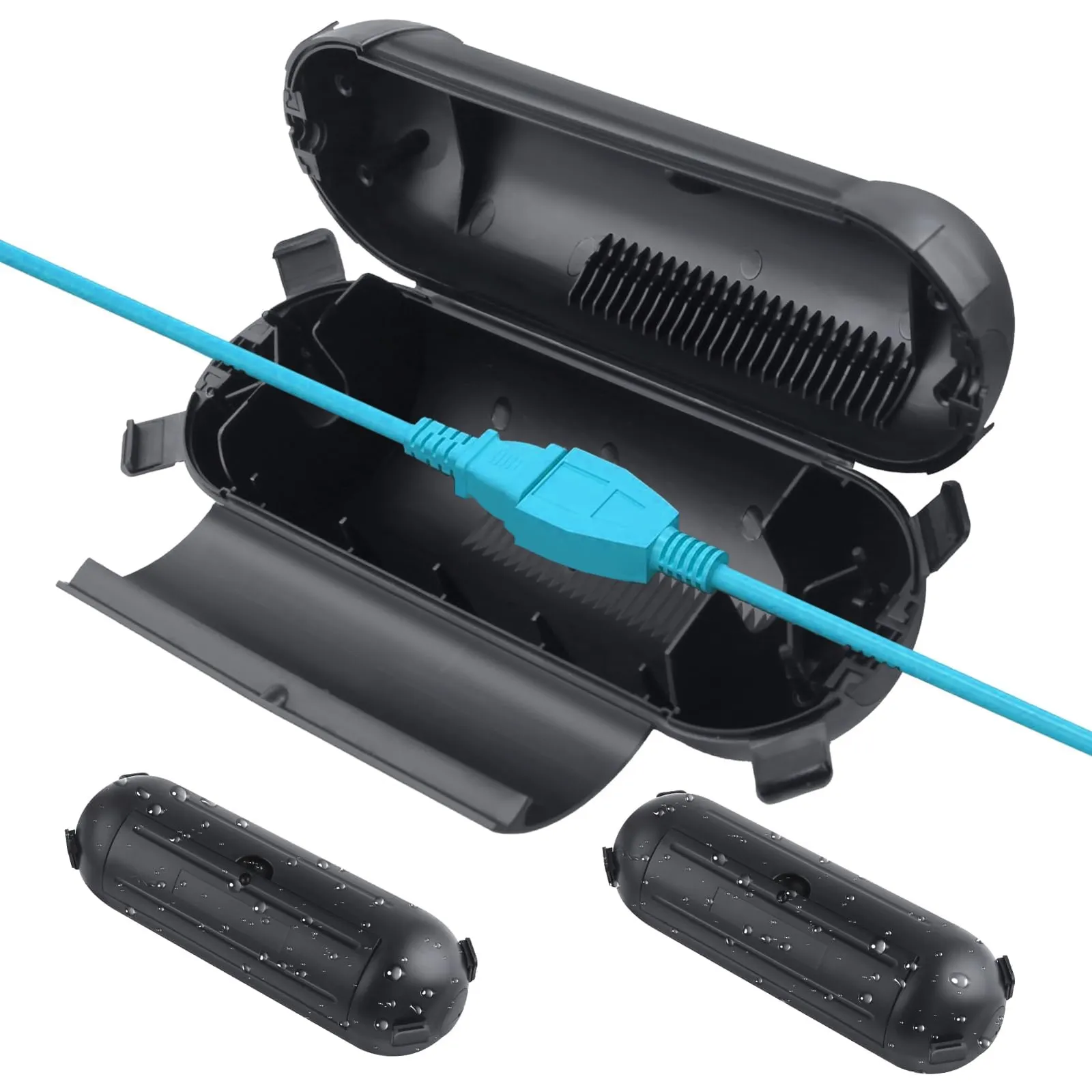 【使い方は簡単】トップカバーと4つのバックルで簡単に開閉でき、接続部を内側に差し込み、ケーブルクランプでワイヤーを固定し、ロックして密閉します。