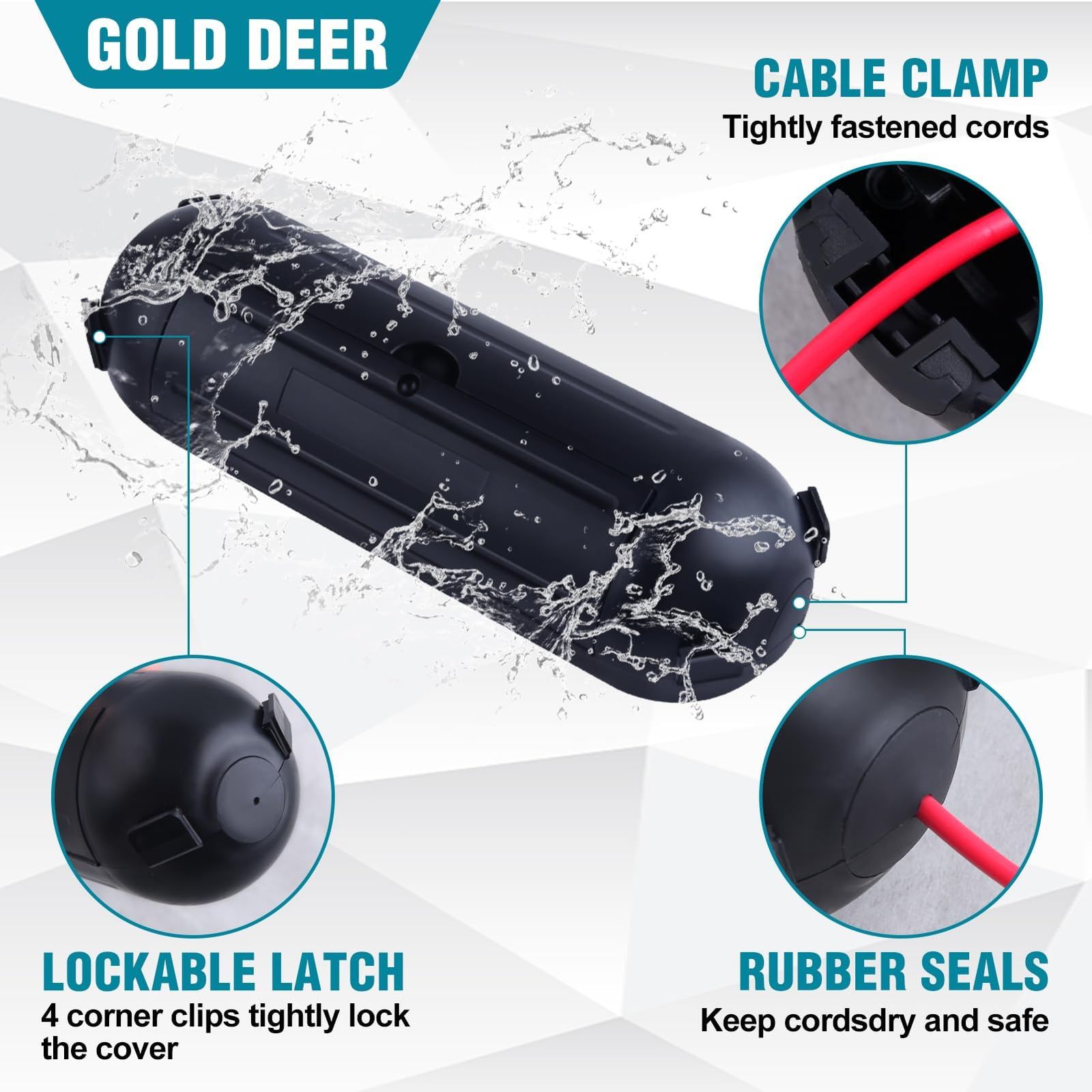 【安全性を】この屋外用ワイヤープロテクターは、防水で密閉された空間を作り出し、屋外と屋内の電気接続をドライで安全に保ちます。屋外で電気機器を使用する際の安全性を確保するため、どこにでも簡単に設置、吊り下げることができます。 ブランド GOLD DEER 色 ブラック 電圧 1 ボルト (AC) 最後までご確認頂き誠にありがとうございました。 ご確認頂き、ご購入いただけましたら幸いです。 何かご不明点などがございましたらお気軽にメッセージからお問い合わせ下さい。