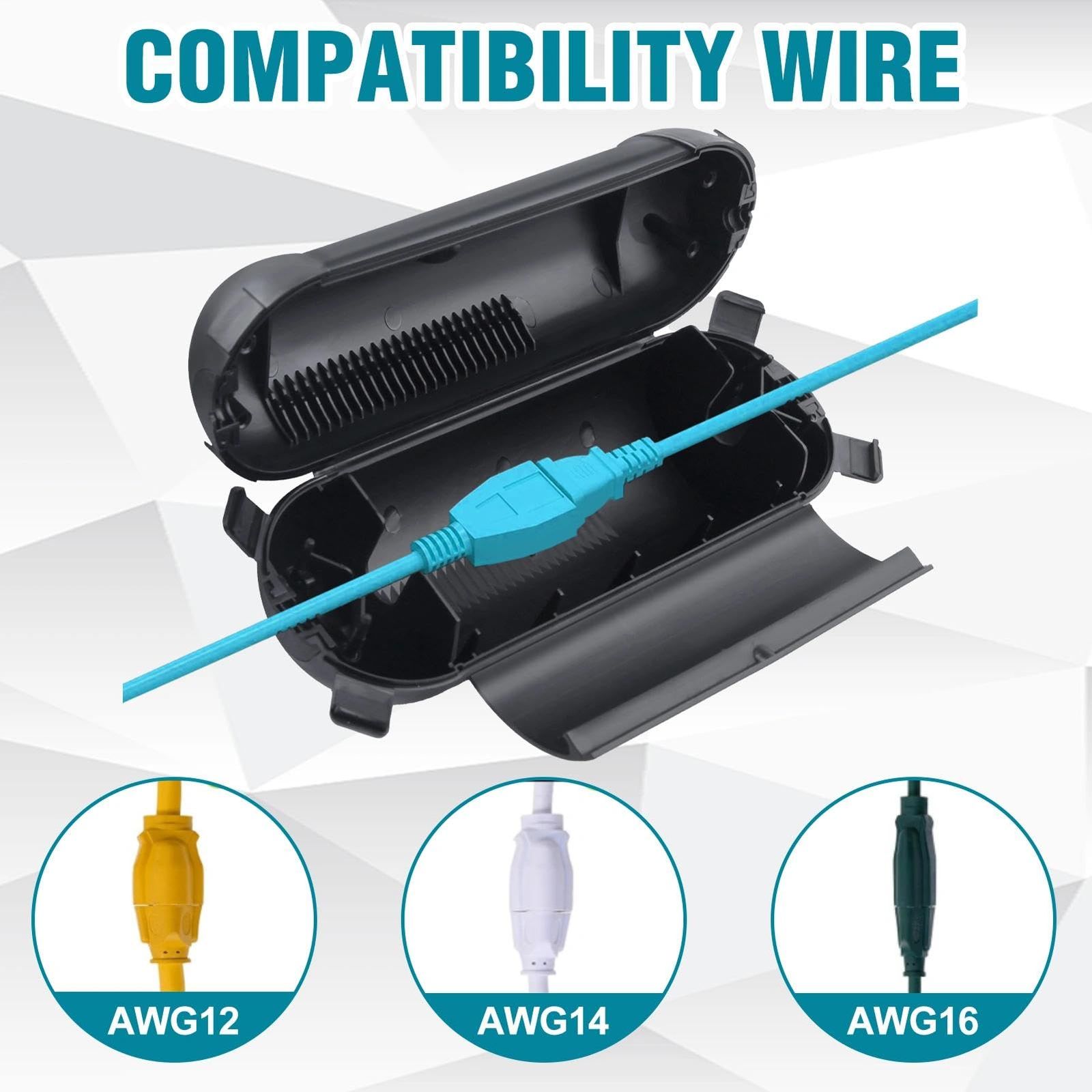 【軽量】コンパクトなサイズと軽量設計は、空中に吊り下げられた延長コードを保護するのに最適です。様々なサイズのプラグや屋外用延長コードを収納できる十分なスペースがあり、安全に使用できます。
