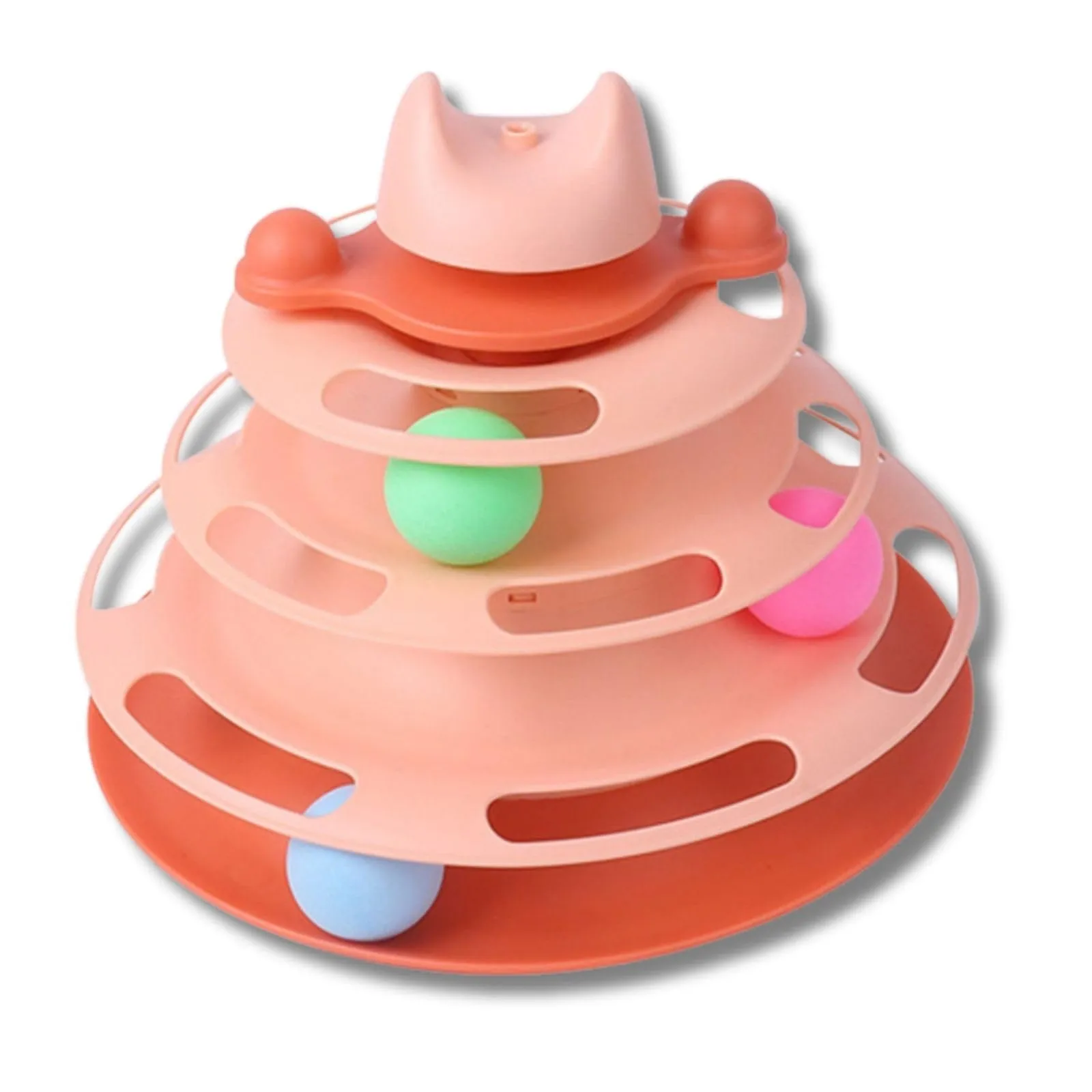 猫 ネコ おもちゃ ボール 一人遊び ボールタワー ストレス解消 運動不足対策 (ピンク)