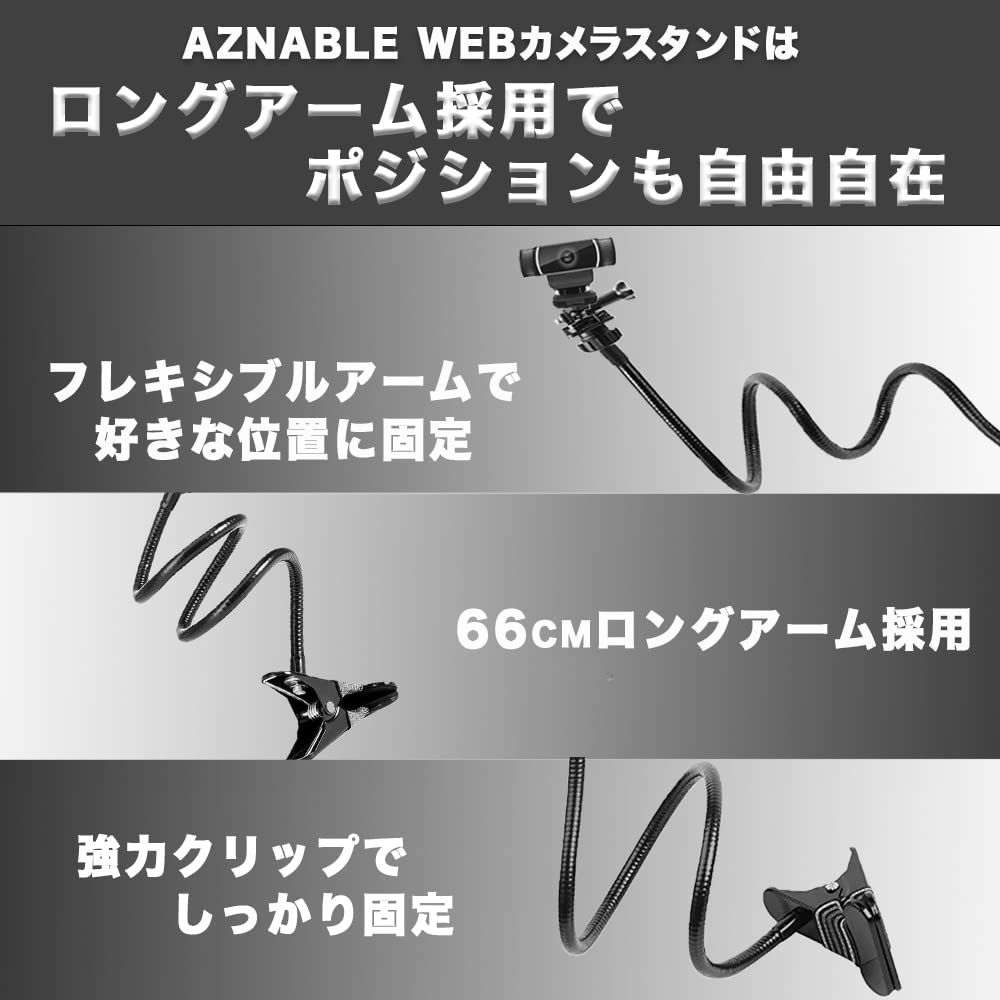AZNABLE ウェブカメラ アーム スタンド 66cm ロジクール Logitech 対応 クリップ (商品単体)