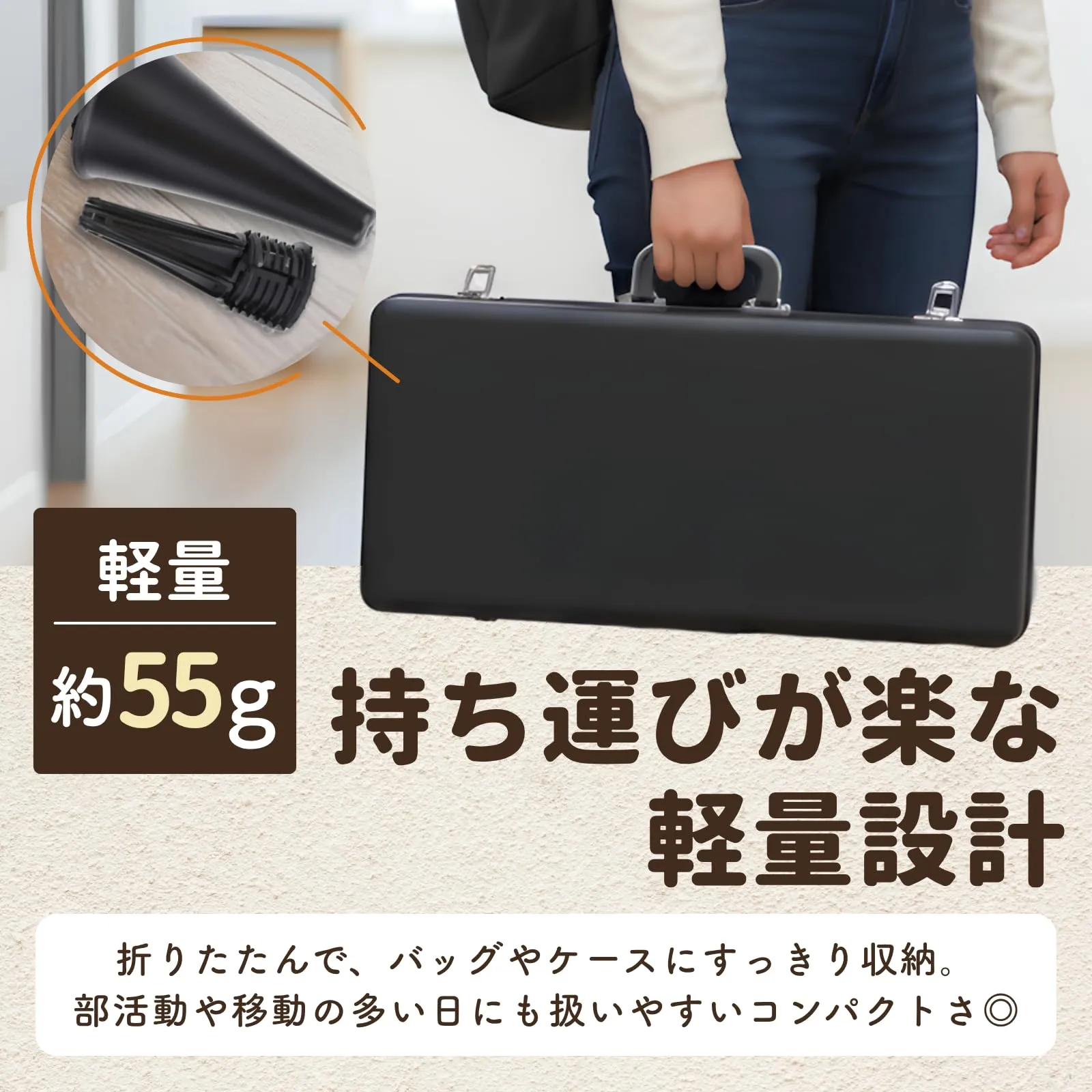 【コンパクト設計】足部分は取り外し可能で、本体内に収納できます。ベル内に本体を収納し、ケースで持ち運びが可能です。