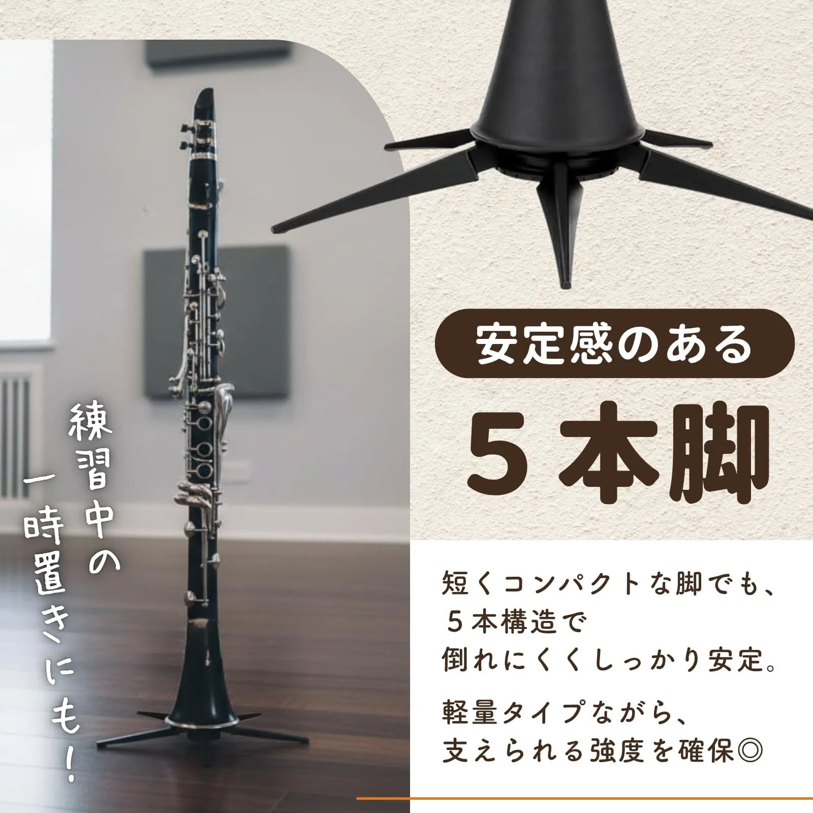 ideamall クラリネットスタンド スタンド 折りたたみ式 コンパクト 転倒防止 5本脚 (ブラック)