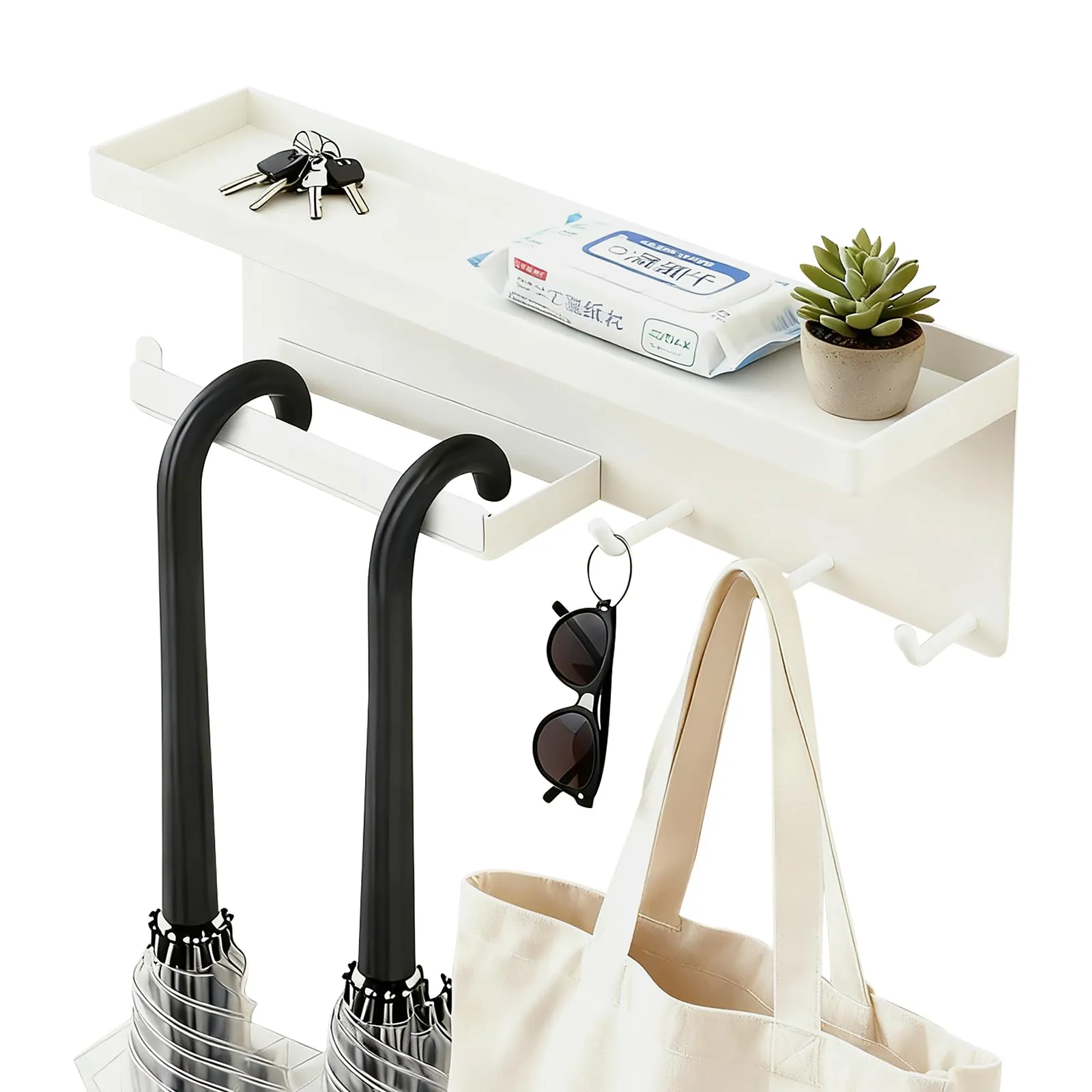 7x8x30cm ギフト対応 壁傷防止 ドア用 スリム設計 小物入れ 鍵置き マグネットラック ホワイト 玄関収納 トレー付き 傘立て マグネット HOTOZON