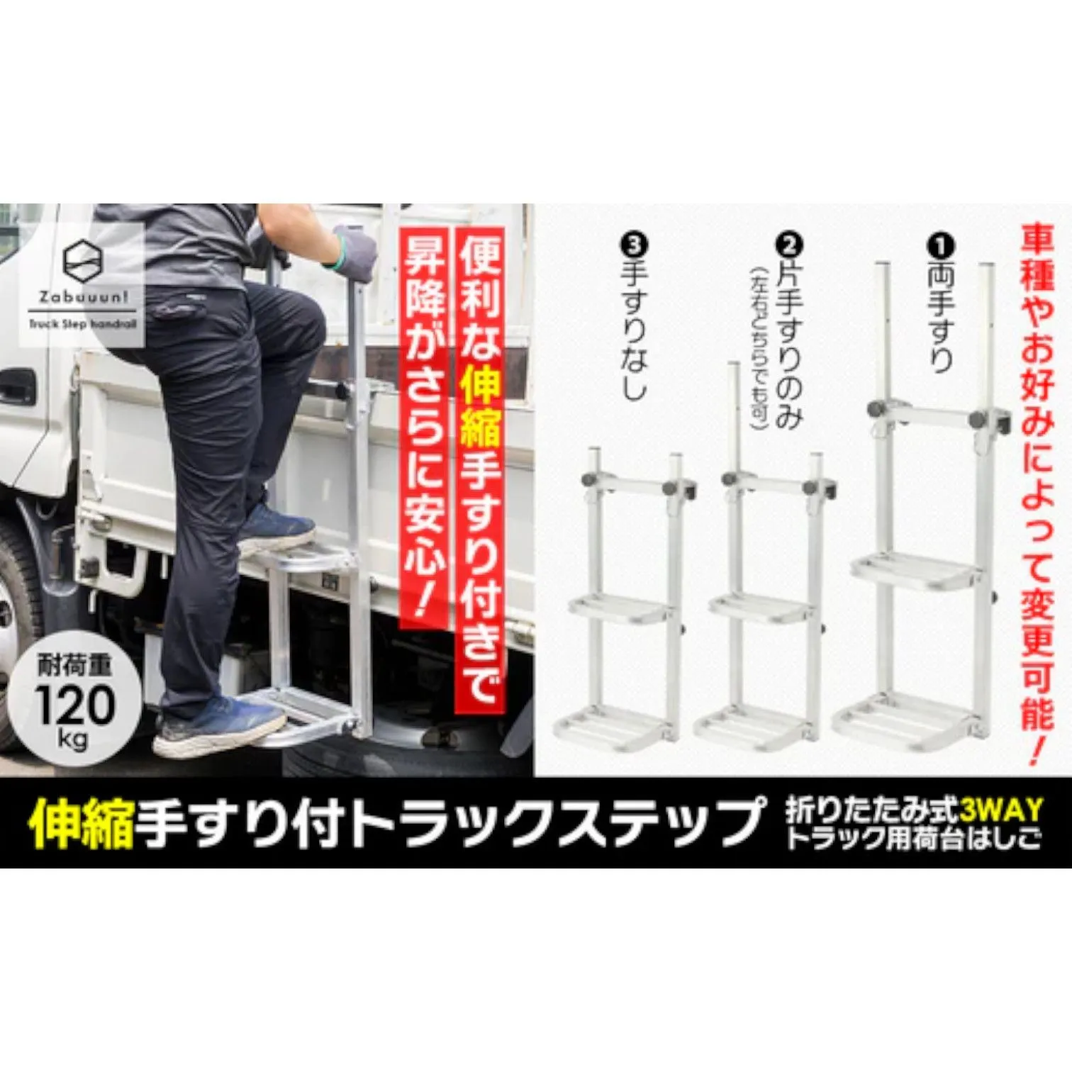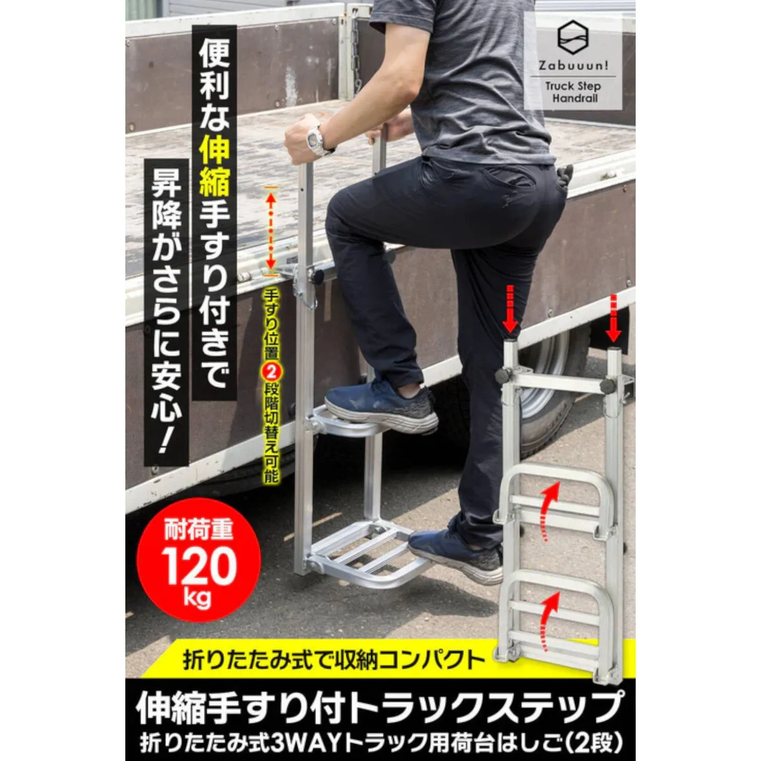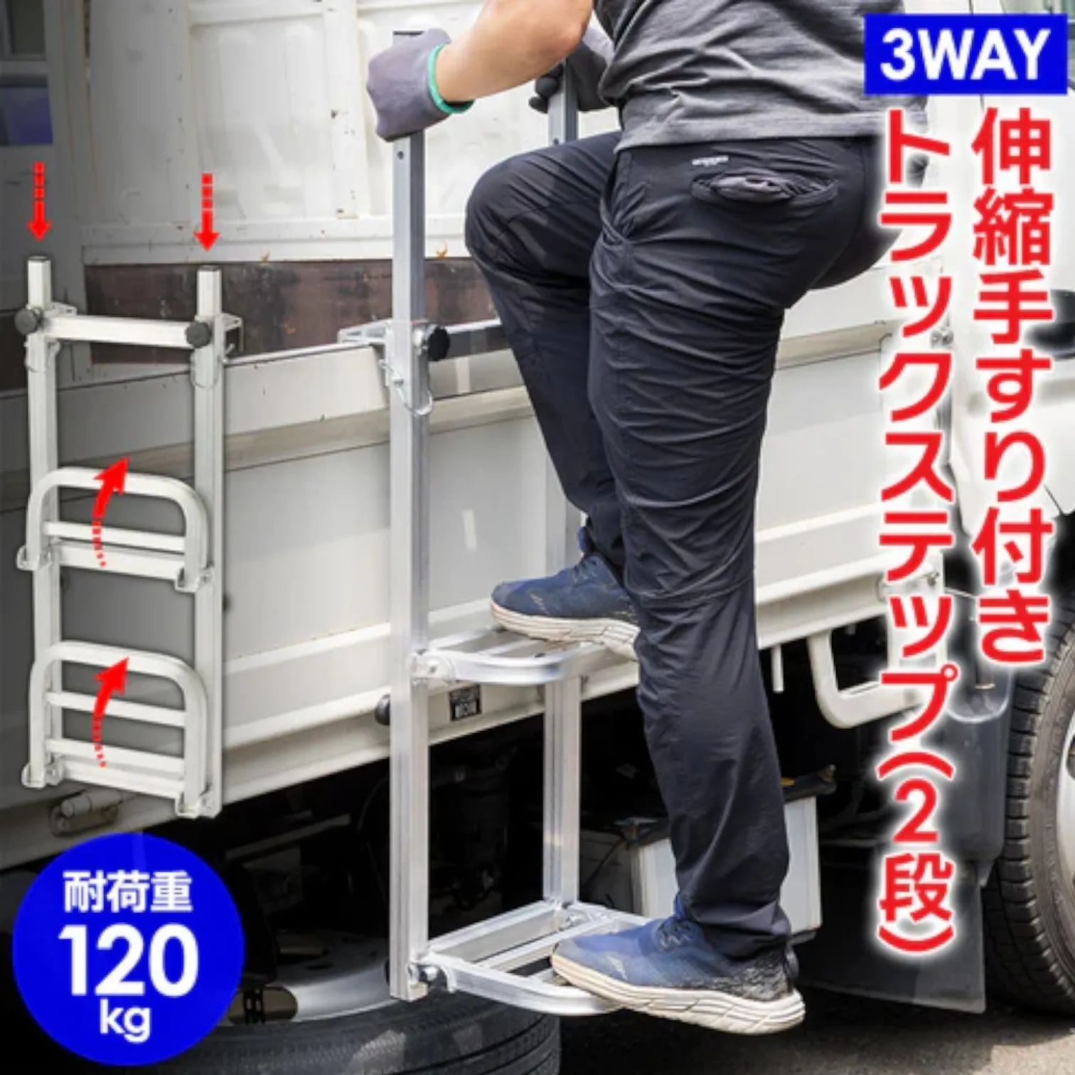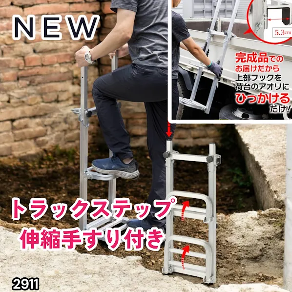 #2911 手すり付き 折りたたみ式 トラックステップ 耐荷重120kg 2段 アルミ製 トラックラダー トラック用荷台はしご 昇降ステップ 荷台ステップ ※一部地域離島別途配送料有