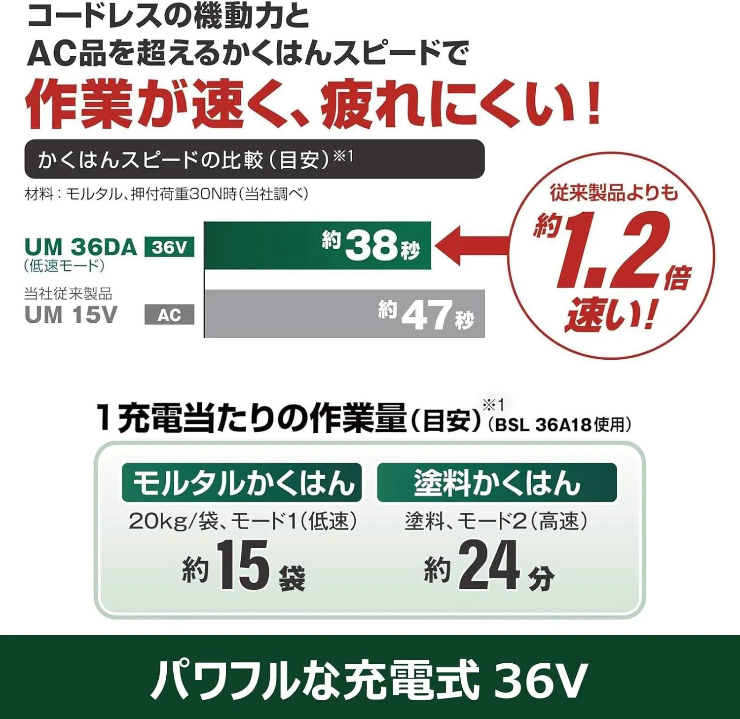新品 HiKOKI(ハイコーキ) 36V コードレス かくはん機 スクリュ径200mm モルタル 塗料 電池1個・充電器付 UM36DA(XPZ) かくはん機