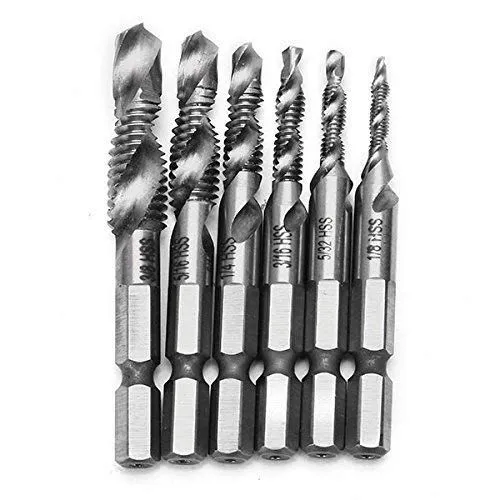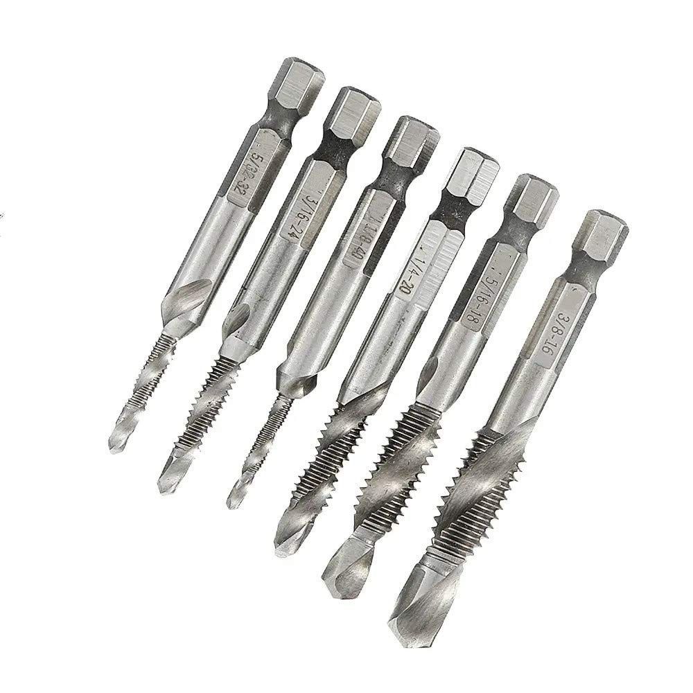YCOSON 1/8-3/8 インチ BSW スレッド HSS 組み合わせドリル タップ ビット セット 1/4 インチ六角シャンク バリ 6 個入皿ビット -