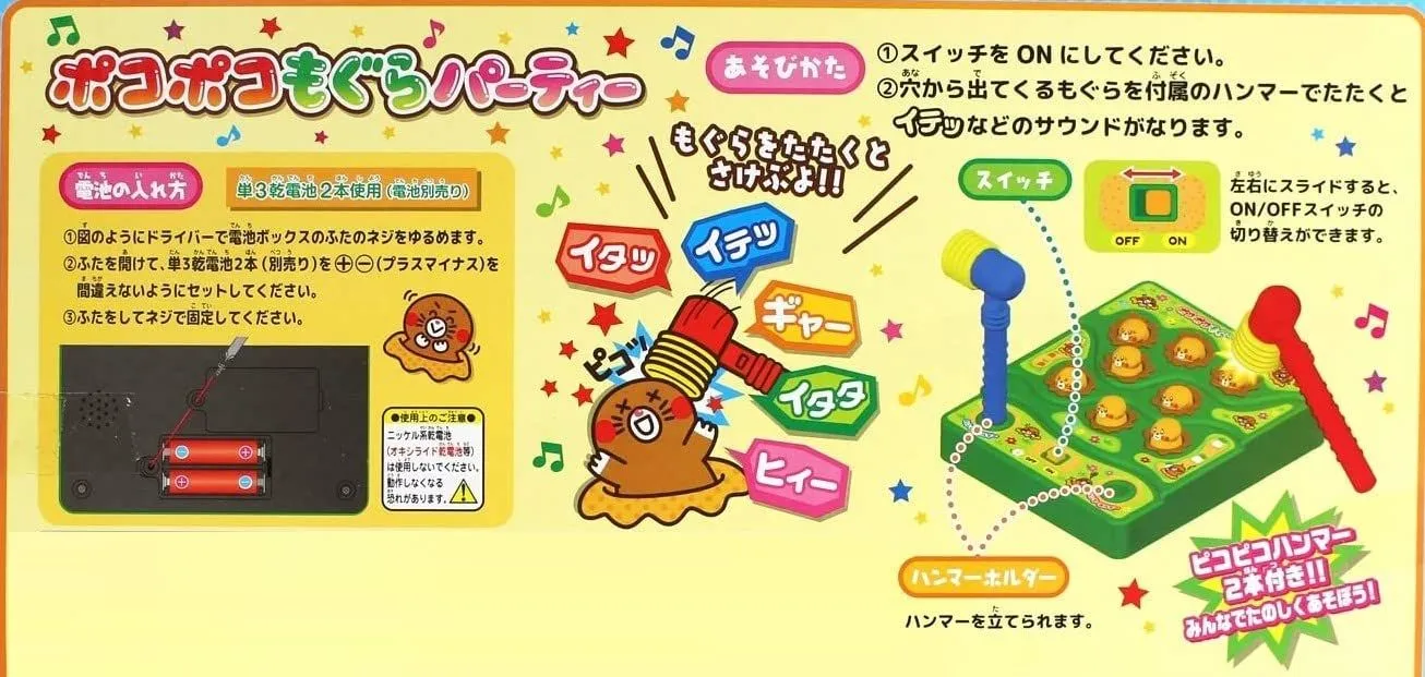 ●穴から出てくるモグラを付属のハンマーでたたく、もぐら叩きゲーム。