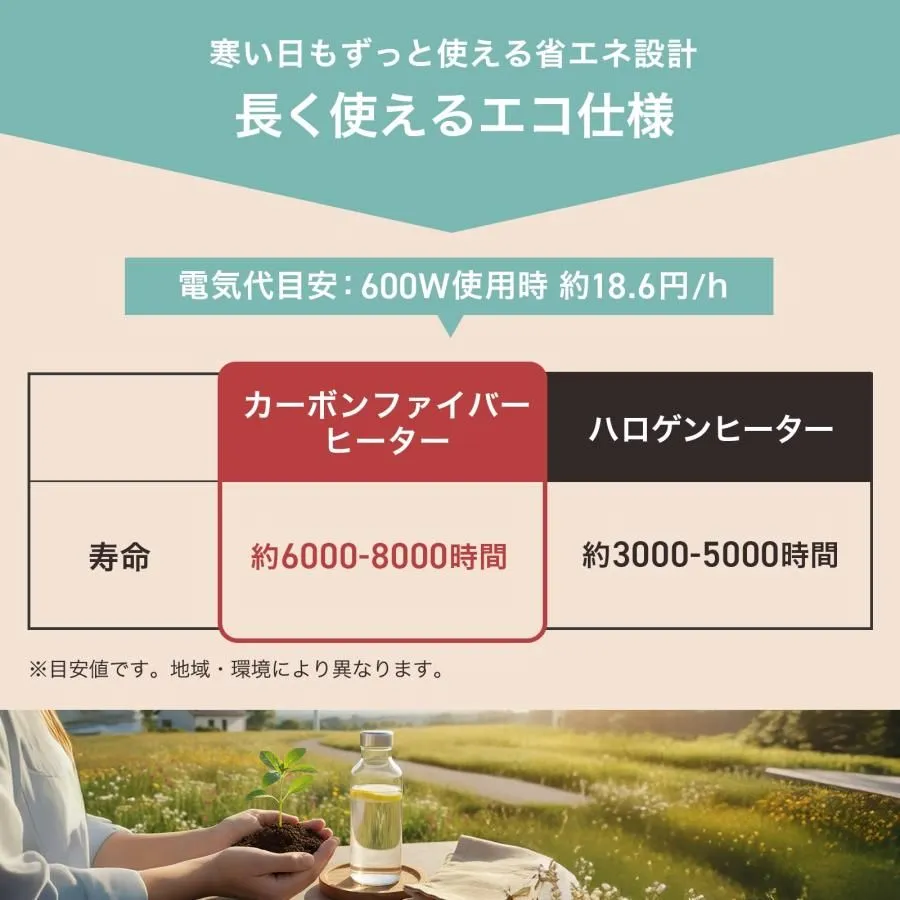 ■遠赤外線で芯から暖かい カーボンファイバー管を採用しています。 身体の表面だけでなく内側からじんわり暖めるため、冷えやすい環境でも快適に使用できます。