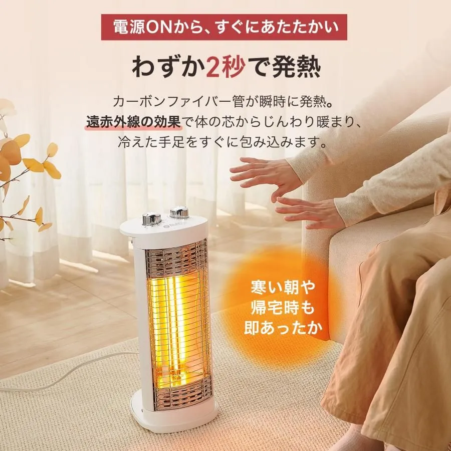 ■すぐに暖まる速暖性能 電源ONから約2秒で発熱します。 寒い部屋でもすぐに暖かさを感じられ、帰宅時や朝の冷え込み時にも便利です。