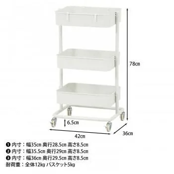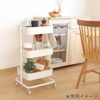 不二貿易 C/D:45066 高さが調整できるワゴン マルシェ オフホワイト MH-0302-3WH