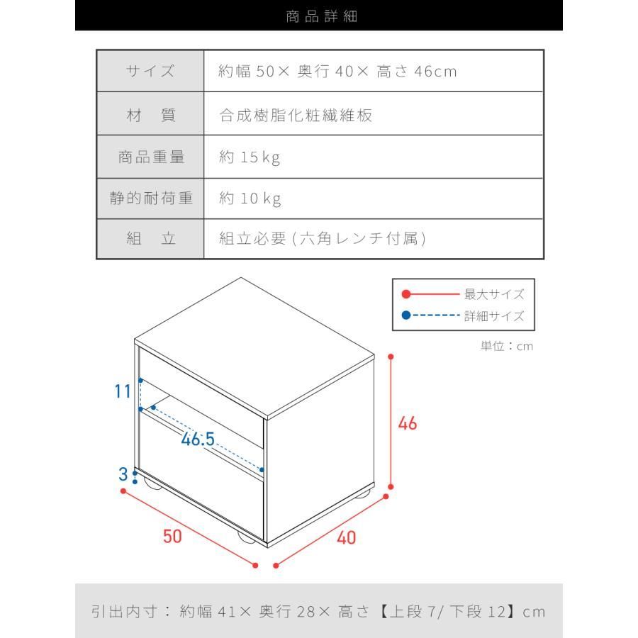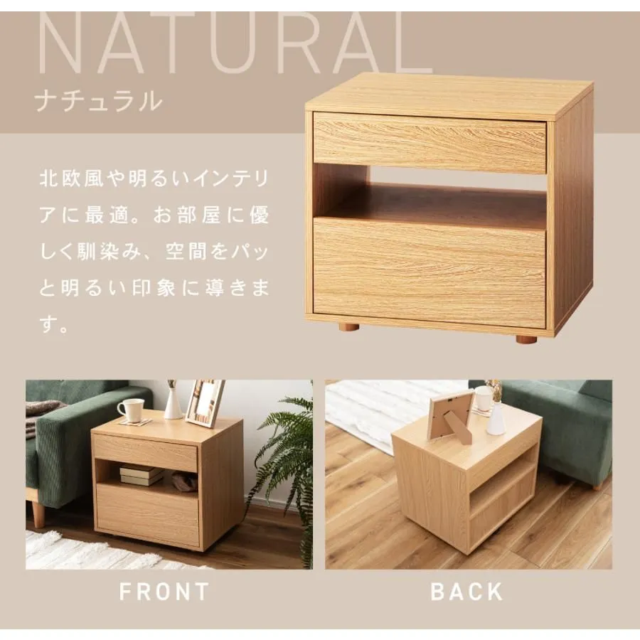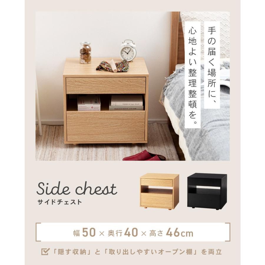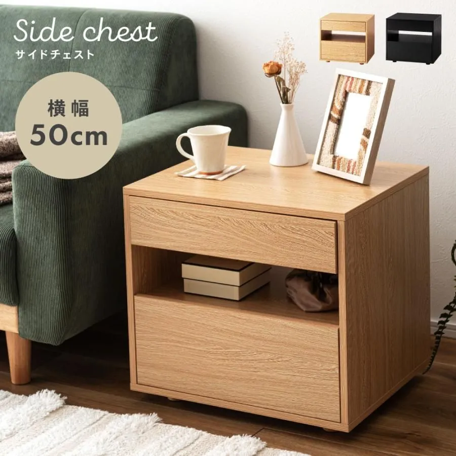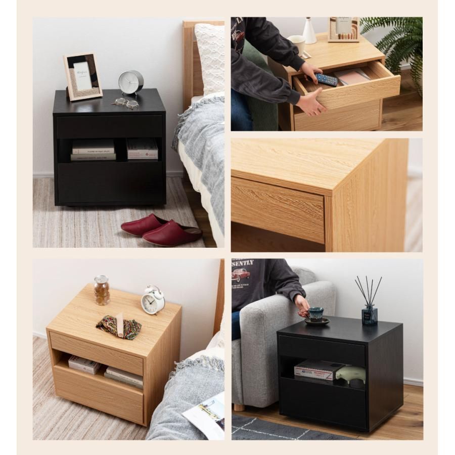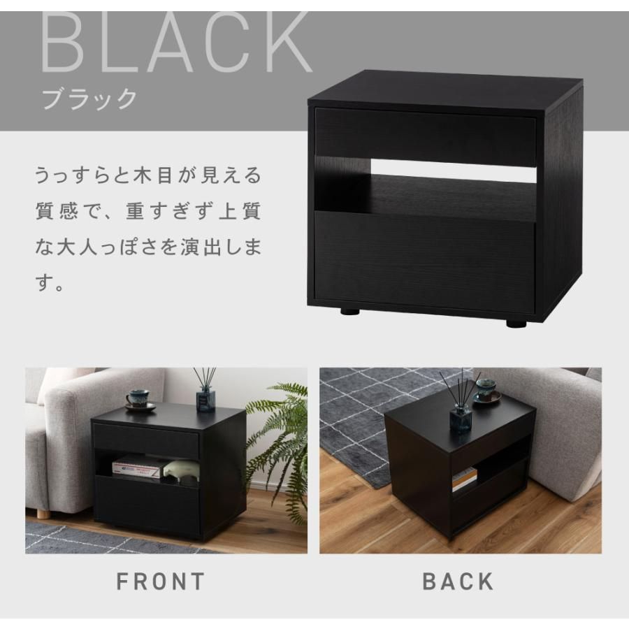サイドテーブル 引き出し付き 収納付き 木目調 幅50cm 高さ46cm 奥行40cm ナチュラル 黒 ブラック 北欧 シンプル おしゃれ モダン 取っ手なし サイドチェスト