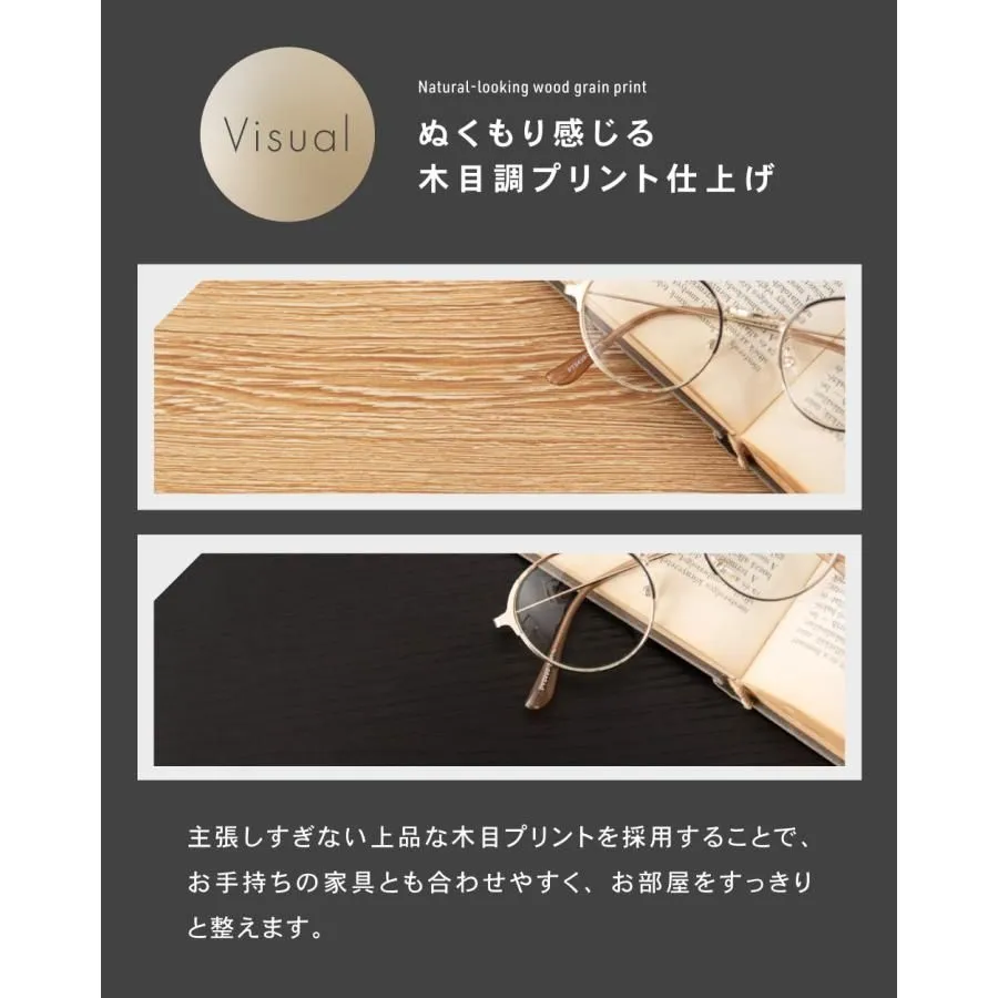 ●ぬくもり感じる木目調プリント仕上げ 主張しすぎない上品な木目プリントを採用することで、 お手持ちの家具とも合わせやすく、お部屋をすっきりと整えます。