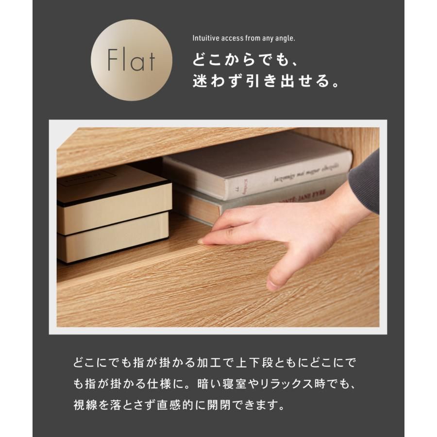 ●空間に溶け込む洗練されたデザイン 取っ手や余計な装飾を一切排除した「フラットフロント」設計。 シンプルを極めることで、どんな部屋にも自然に馴染む普遍的な美しさを実現しました。