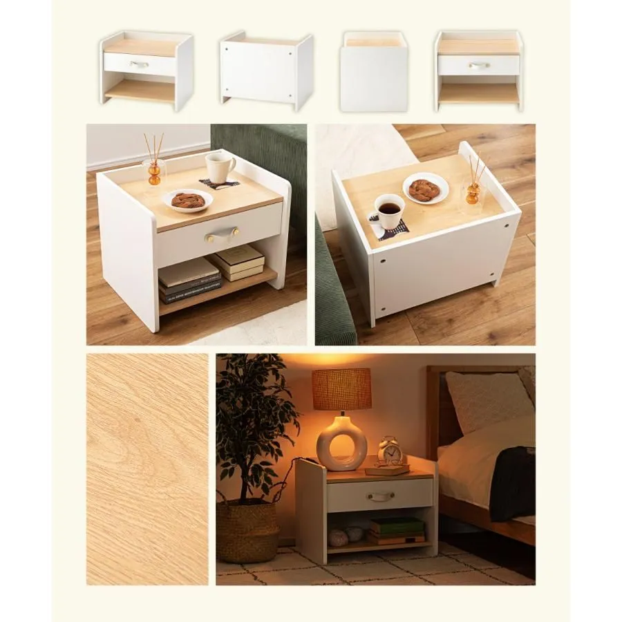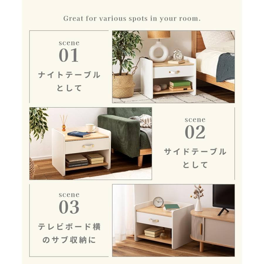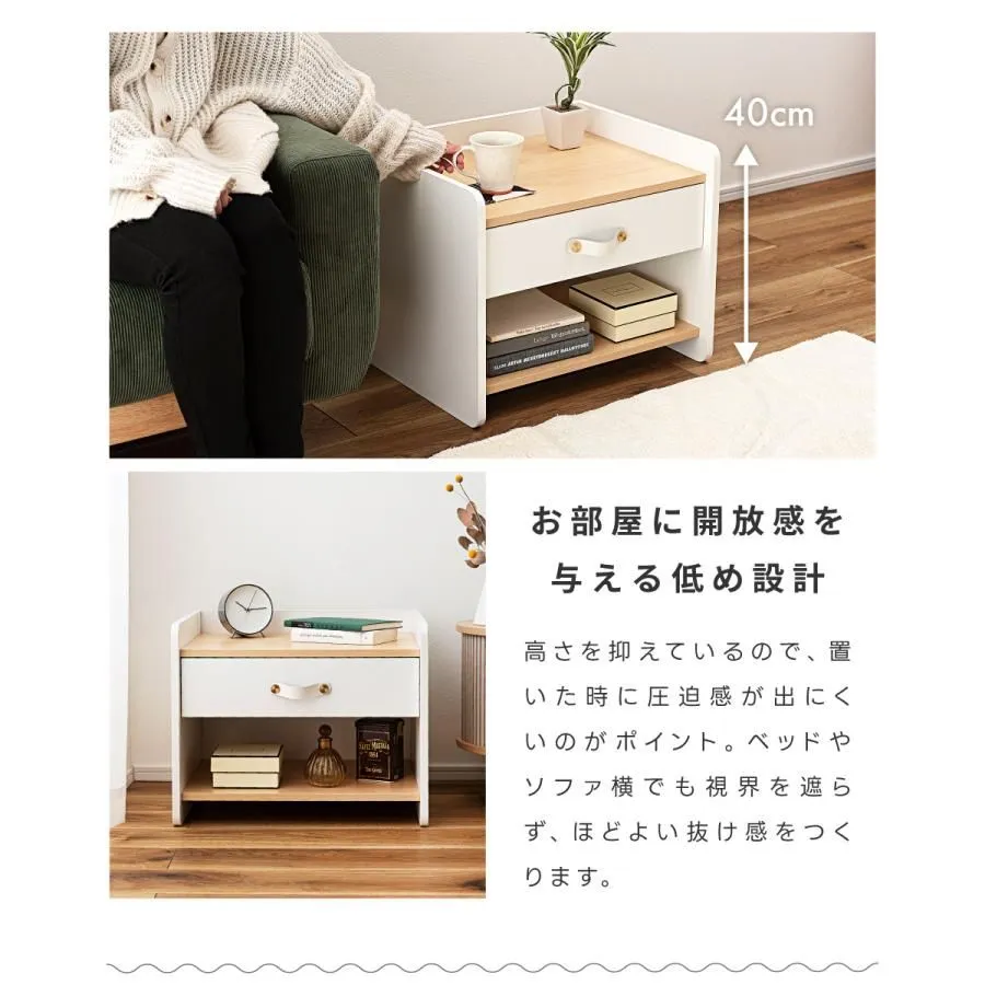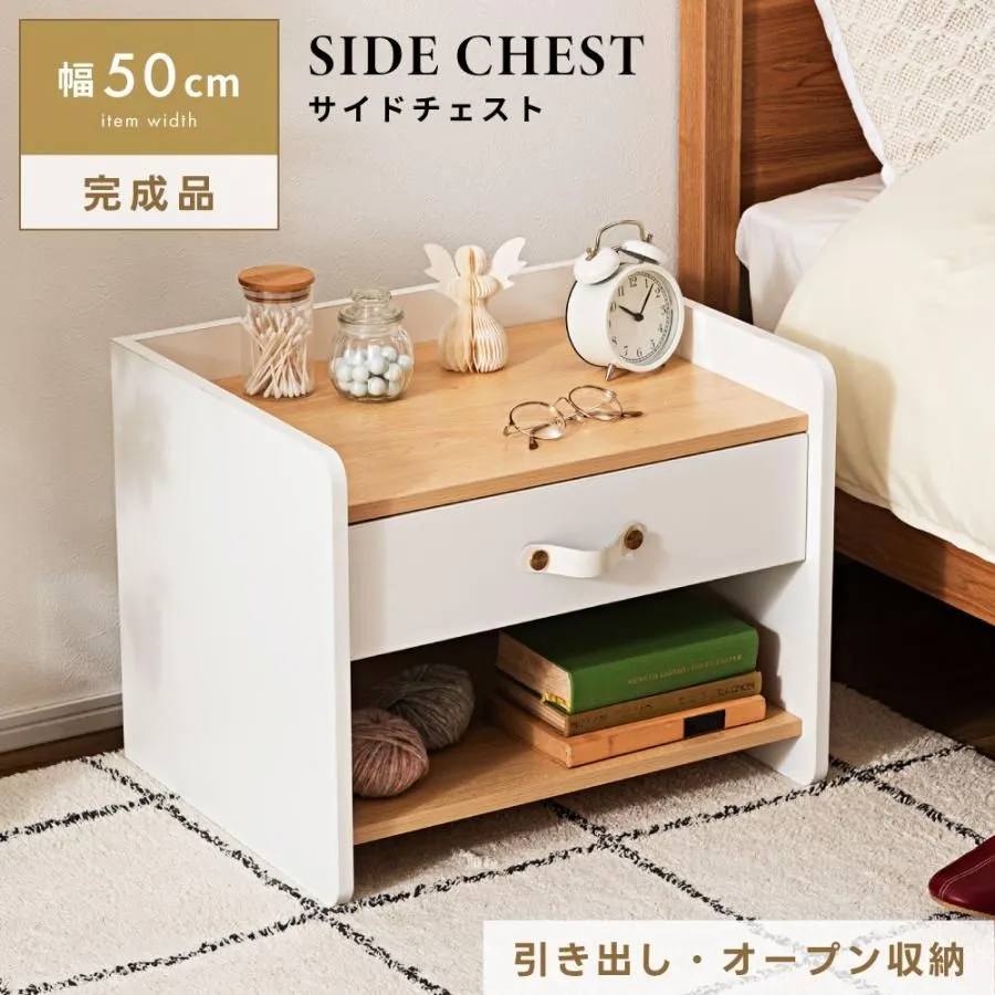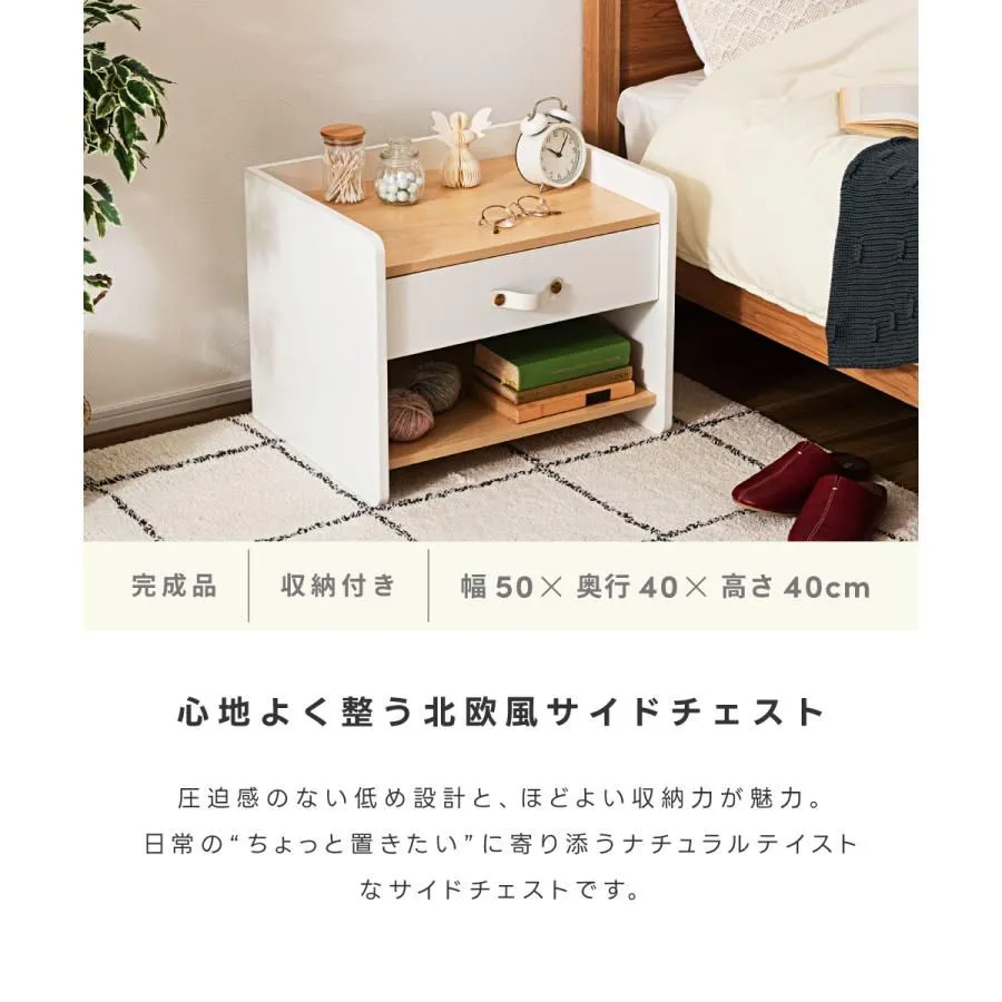 【検索キーワード】 サイドテーブル 高さ40cm 引き出し 完成品 組立不要 幅50cm サイドチェスト 木目調 収納 ナイトテーブル ベッドサイドテーブル サイドテーブル 白 ホワイト 北欧 ナチュラル シンプル モダン おしゃれ