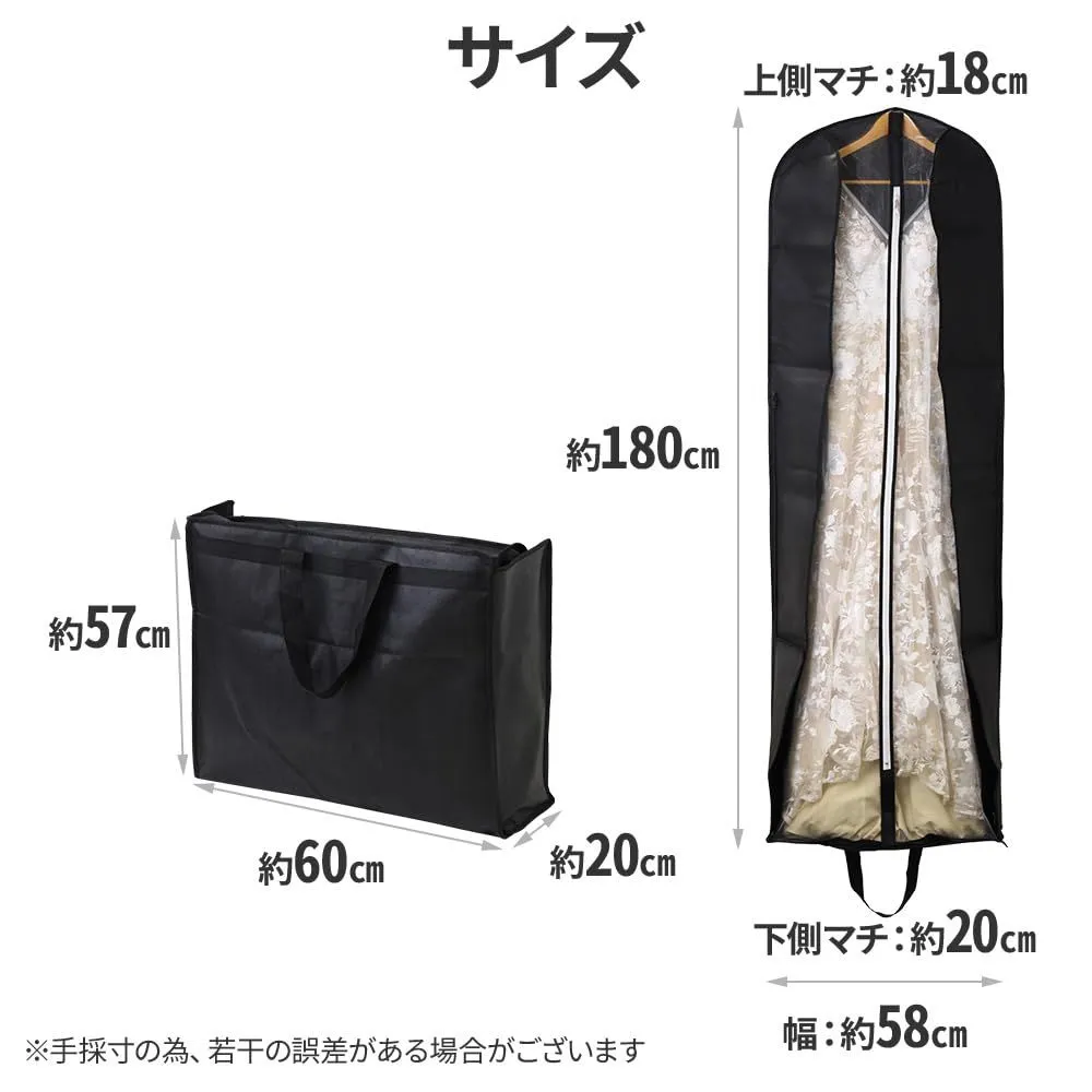 SUGGEST ドレスバッグ ガーメントバッグ 選べるサイズ レディース ドレスカバー バッグ 衣類収納袋 ドレス カバー ウエディング 社交ダンス 持ち運び (180cm)
