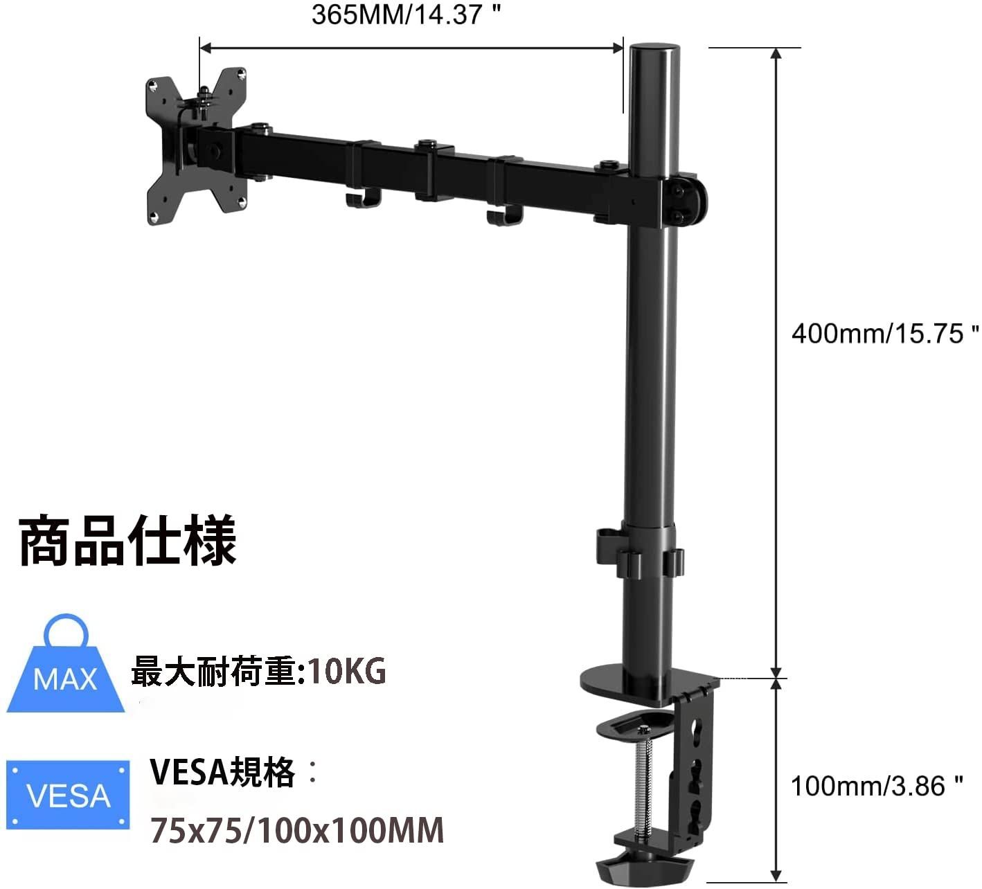 【即日発送】VESA アーム 75*75/100*100MM アーム 多軸液晶ディスプレイ 17~27インチ10KG以内のモニターに対応 モニター PC MD97421 モニターアーム Pholiten