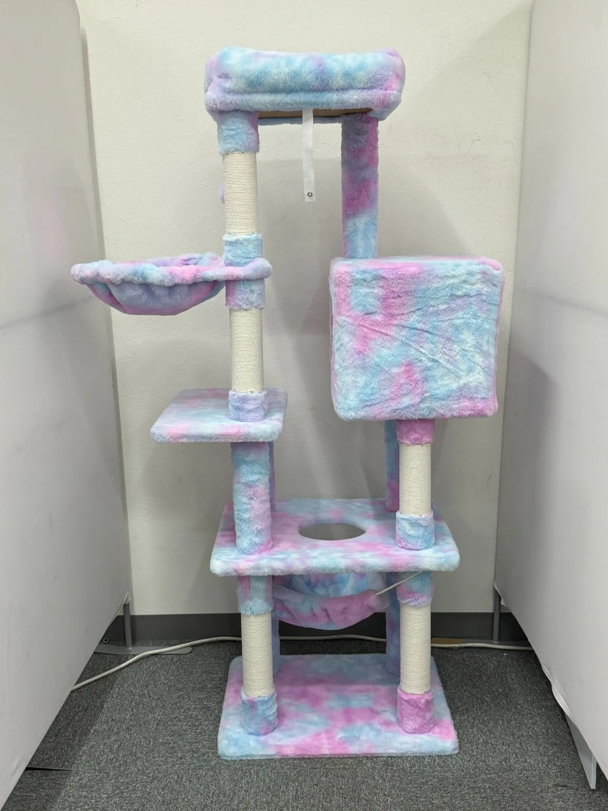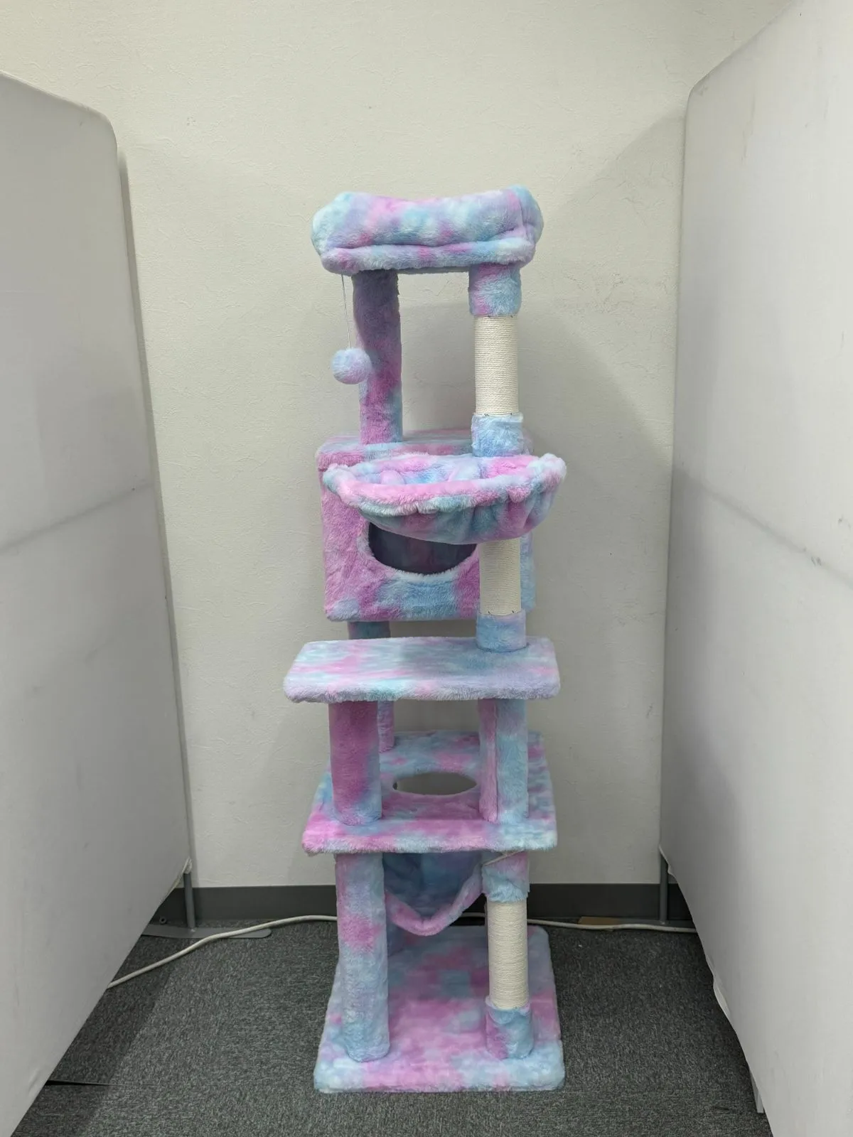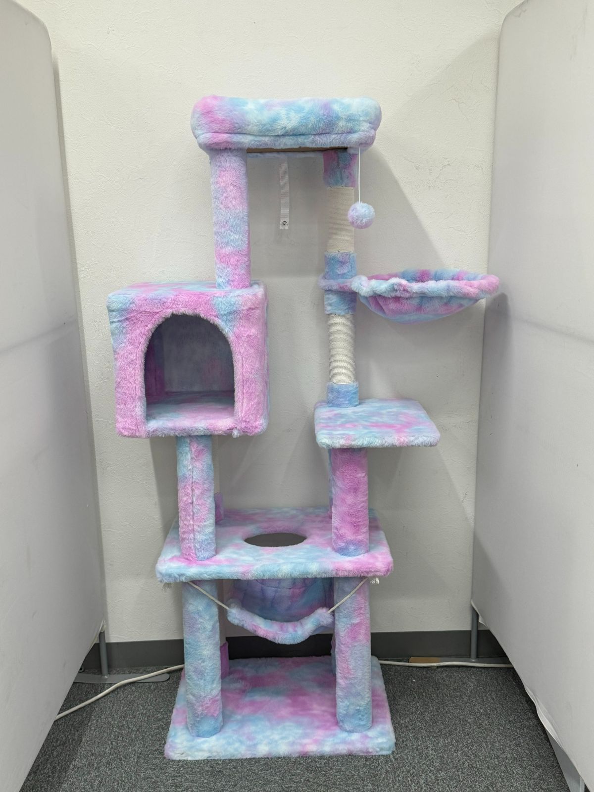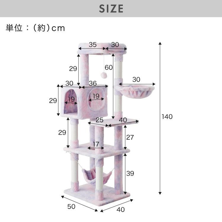 【特長】 キャットタワー、キャットハウス、キャットツリー、猫タワー、据え置き、ハウス、ハンモック、猫、ねこ、ネコ、爪とぎ、つめとぎ、ベッド、おもちゃ、多頭飼い、シンプル、かわいい、インテリア、ペット、ペット用品、猫用品、省スペース、置き型、低ホルムアルデヒド、エコテックス、FSC認証、頑丈、安定、紫、運動不足、ストレス解消