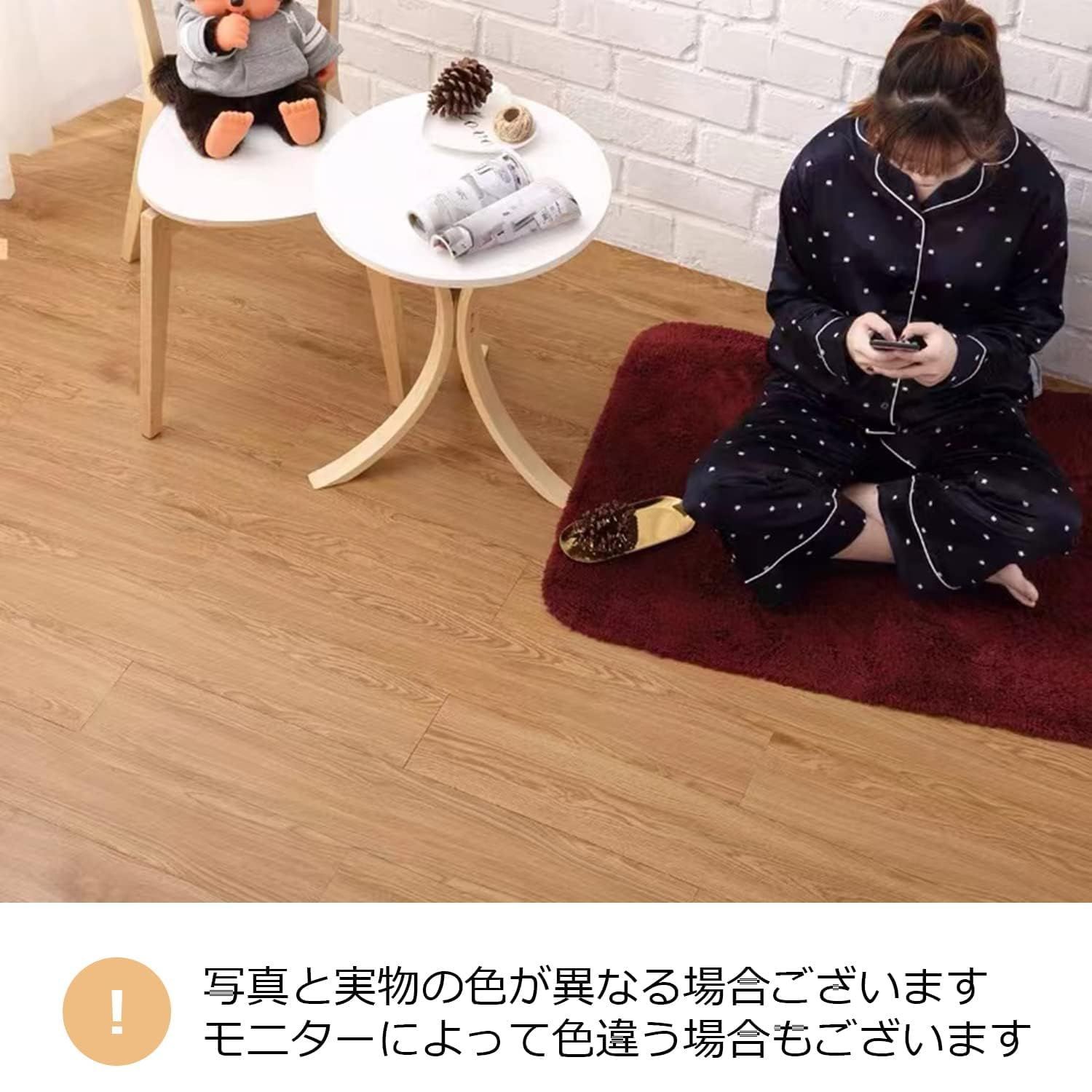 【防水滑り止め】フロアタイル表面には耐久性に優れた特殊クリア加工・抗菌加工に加え、防水、表面についた汚れは濡れ雑巾などでふき取ってください。滑りにくいです。