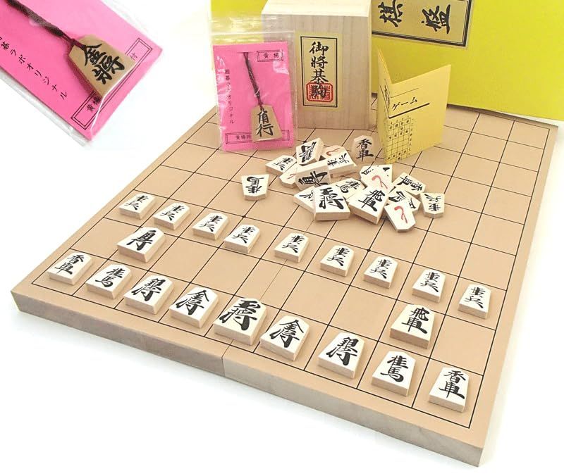 【新着商品】新桂7号折将棋盤と人気ナンバー1の優良押将棋駒 山形天童黄楊彫駒根付つき 木製将棋セット