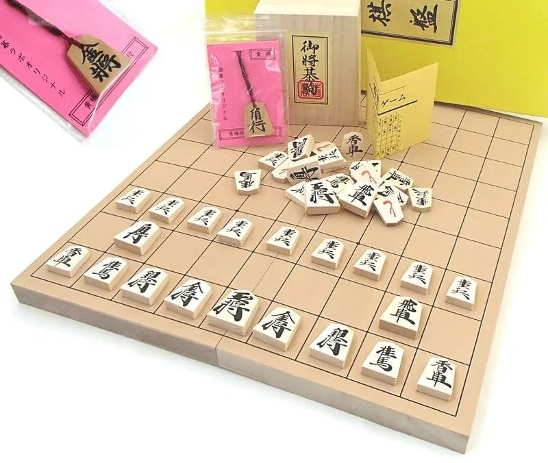 木製将棋セット 山形天童黄楊彫駒根付つき 新桂7号折将棋盤と人気ナンバー1の優良押将棋駒