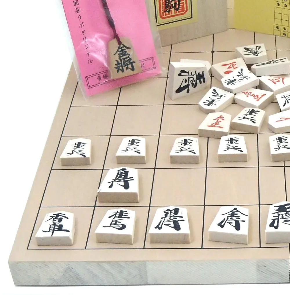 超人気の将棋盤の厚さもある、新桂7号折将棋盤と人気ナンバー1優良押し駒に囲碁ラボオリジナル黄楊彫り駒根付つきの将棋盤セット