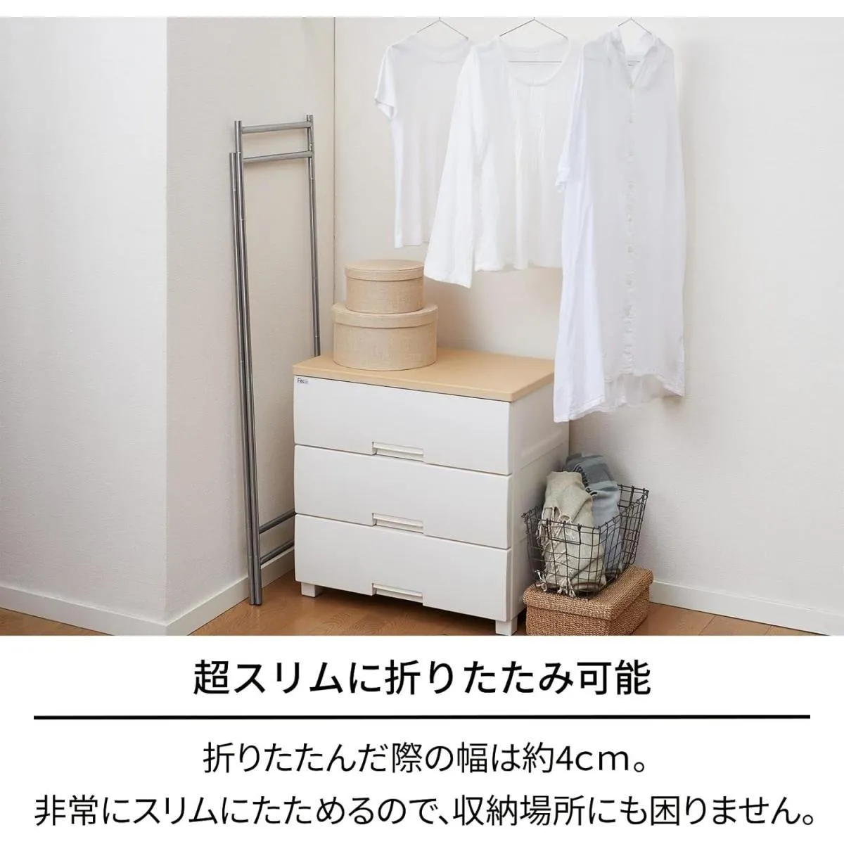 【商品仕様】 最大外寸(約):幅40×奥行40×高さ130cm 折りたたみサイズ約):幅40×奥行4×高さ130cm 商品重量(約):1.2kg 全体耐荷重(約):3.6kg