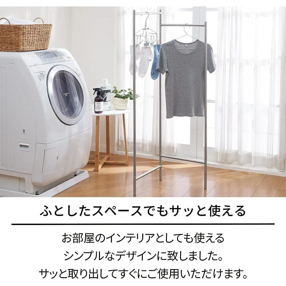 ふとした時に広げるだけですぐに使えるパネル式の物干しです。