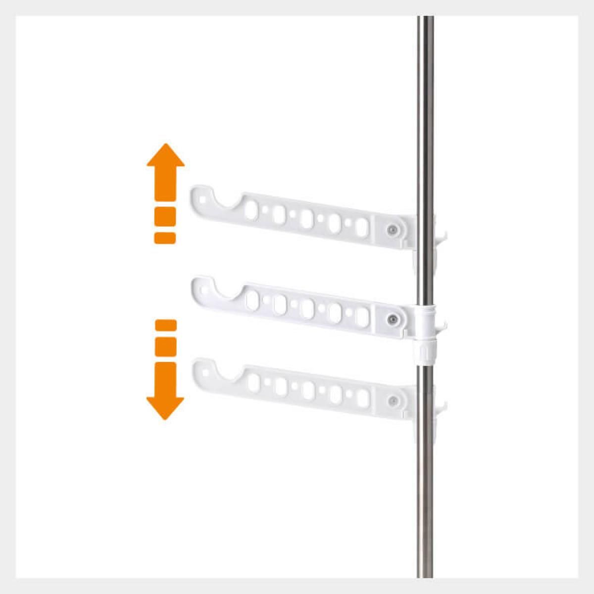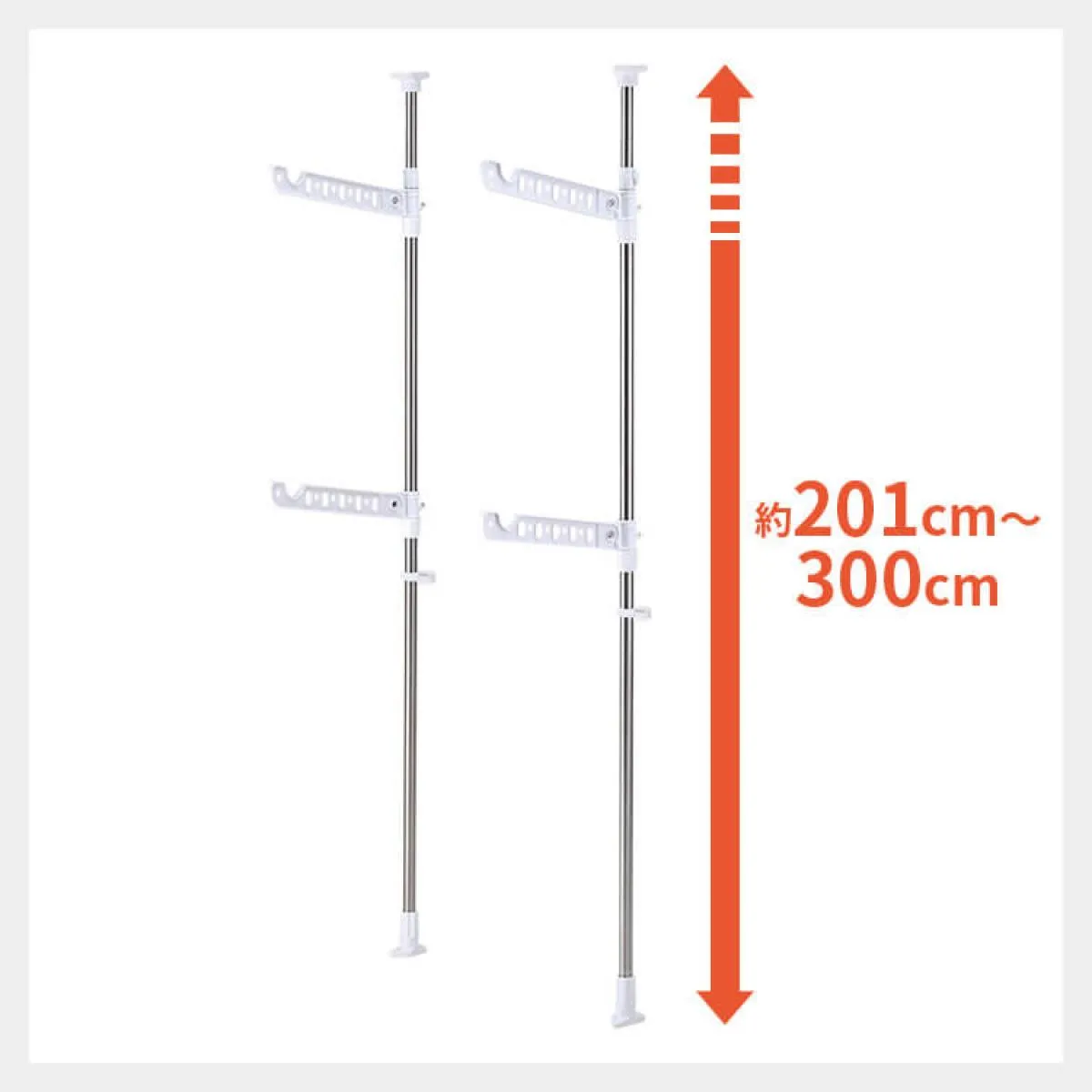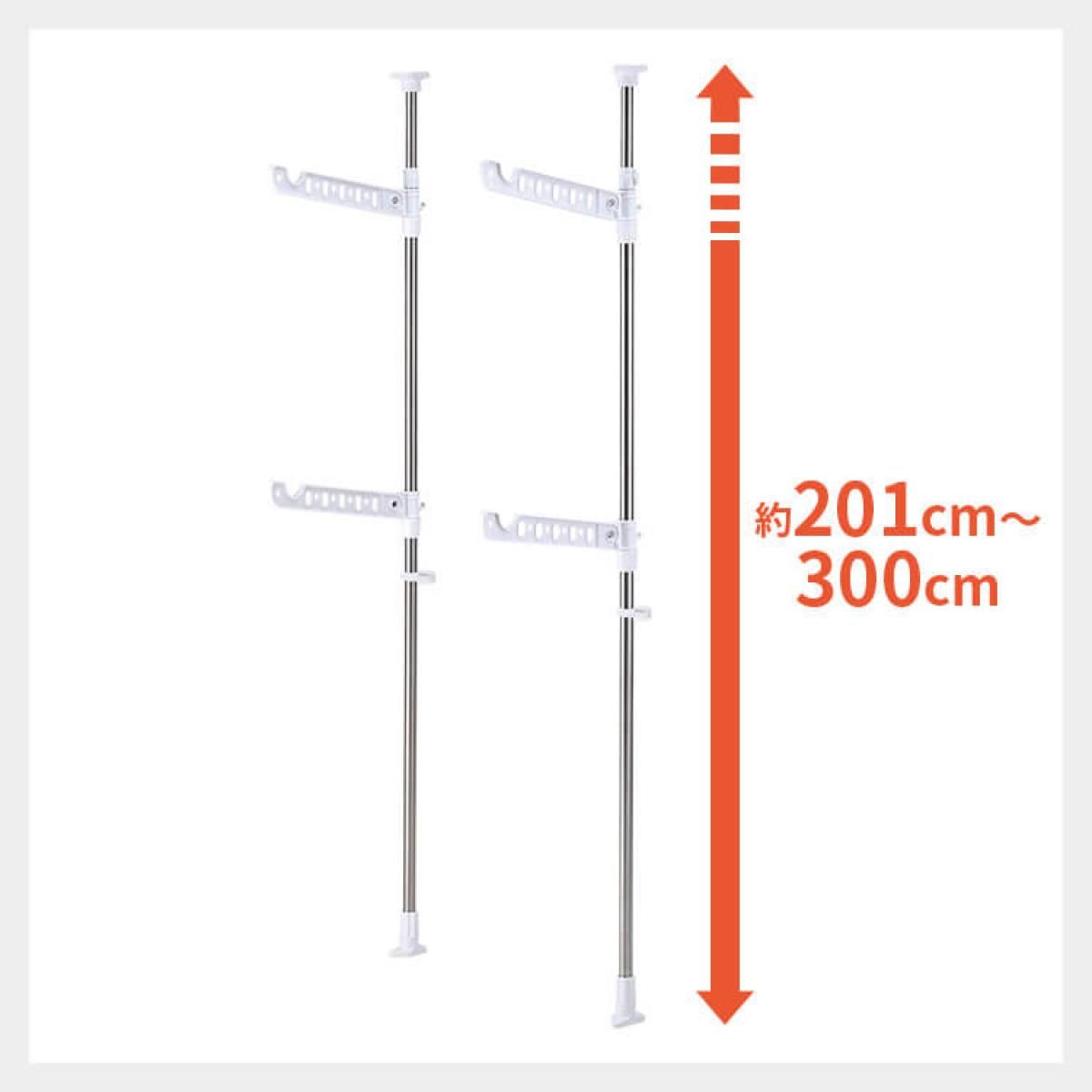 ●コンパクトに収納可能 最大外寸(約):幅5×奥行46×高さ201〜300cm 製品重量(約):3.1kg 全体耐荷重(約):20kg 材質