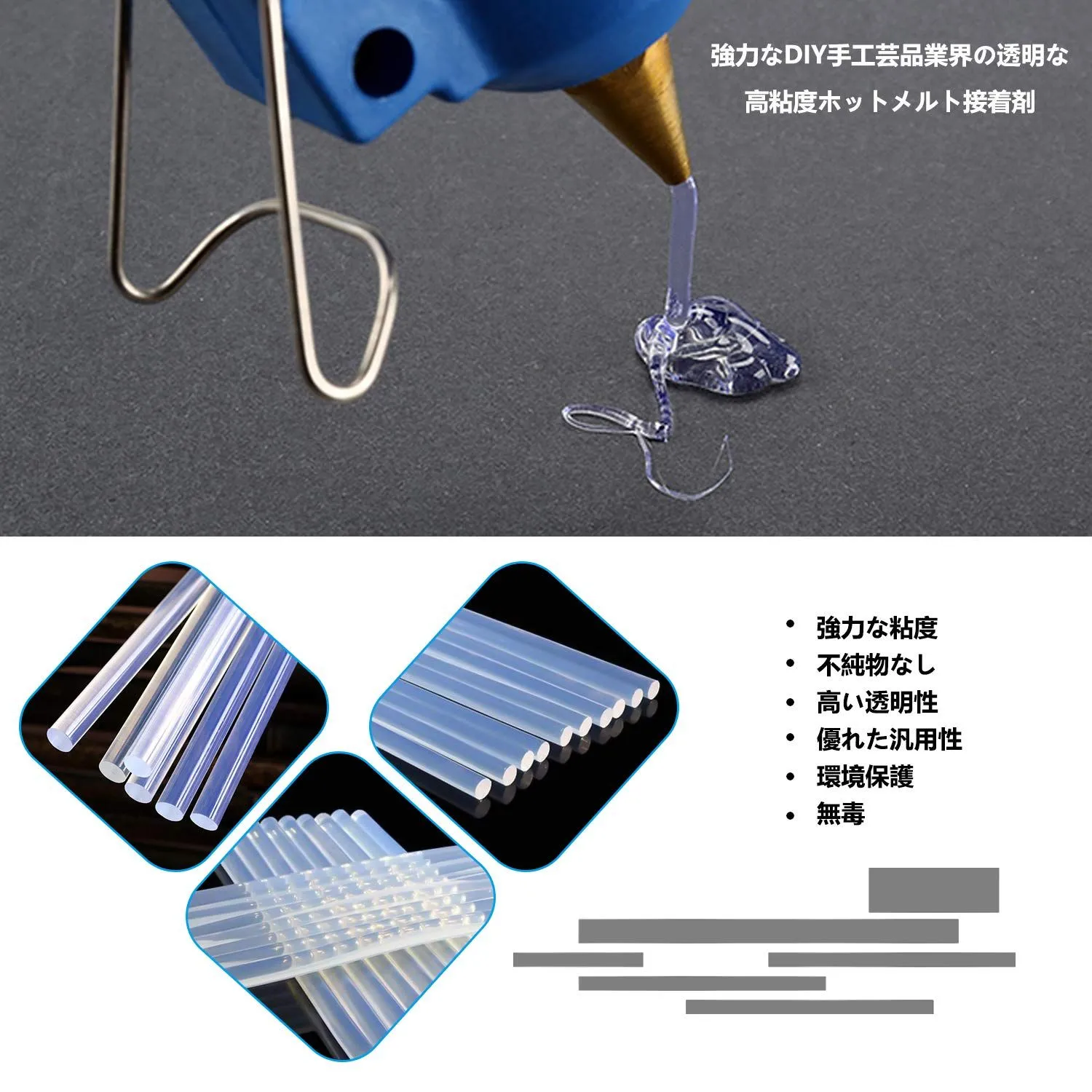 【最初にご確認ください】 初期不良等の際は評価前に取引メッセージにてご連絡お願い致します。 5日以内でしたら対応致します。 評価後の対応は致しませんのでご了承ください。 ショップ情報記載事項のご確認をお願いいたします。 Amazonのアウトレット品 開封後、中身の確認のみ 以下記載のASINをブラウザより検索し、Amazonページ参照ください ASIN:B0CFFD18YP ※アウトレット品の為、傷や汚れがある場合がございます。予めご了承ください。 梱包内容-200PCSクリアホットグルースティック; サイズ:7 x 100mm、20-30wグルーガンに適合。 素材-ホットスティックスティックはEAV樹脂でできています。 無毒で無味、無公害で保管も簡単です。 特殊効果-ホットメルトのりスティックは、プラスチック、木材、紙、ガラス、布地などに適しています。 強力な接着性と優れた安定性。 あなたの工芸品をより簡単で美しいものにします。 短時間で破損する心配はありません。 注-最良の効果を得るには、接着面に水、ほこり、オイルが含まれていないことを確認してください。 このホットメルト接着剤スティックは、高温の小型の接着剤ガンに使用されます。操作に注意し、ホットメルト液に触れないでください。