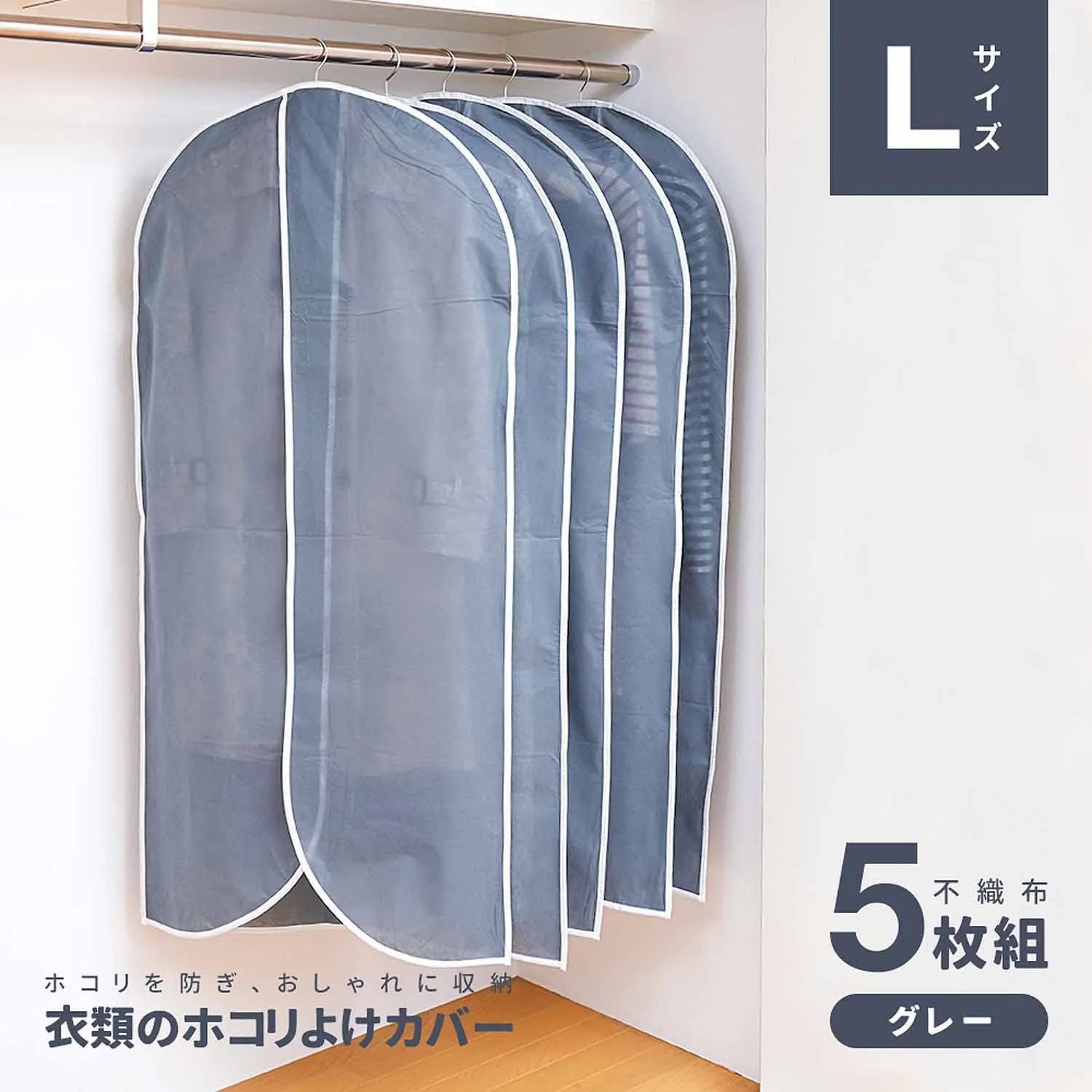 アイメディア(Aimedia) 衣類カバー 防塵カバー スーツカバー ロング 5枚組 埃除け 防汚 衣装カバー コート ジャケット 収納袋 不織布 衣類のホコリよけカバー