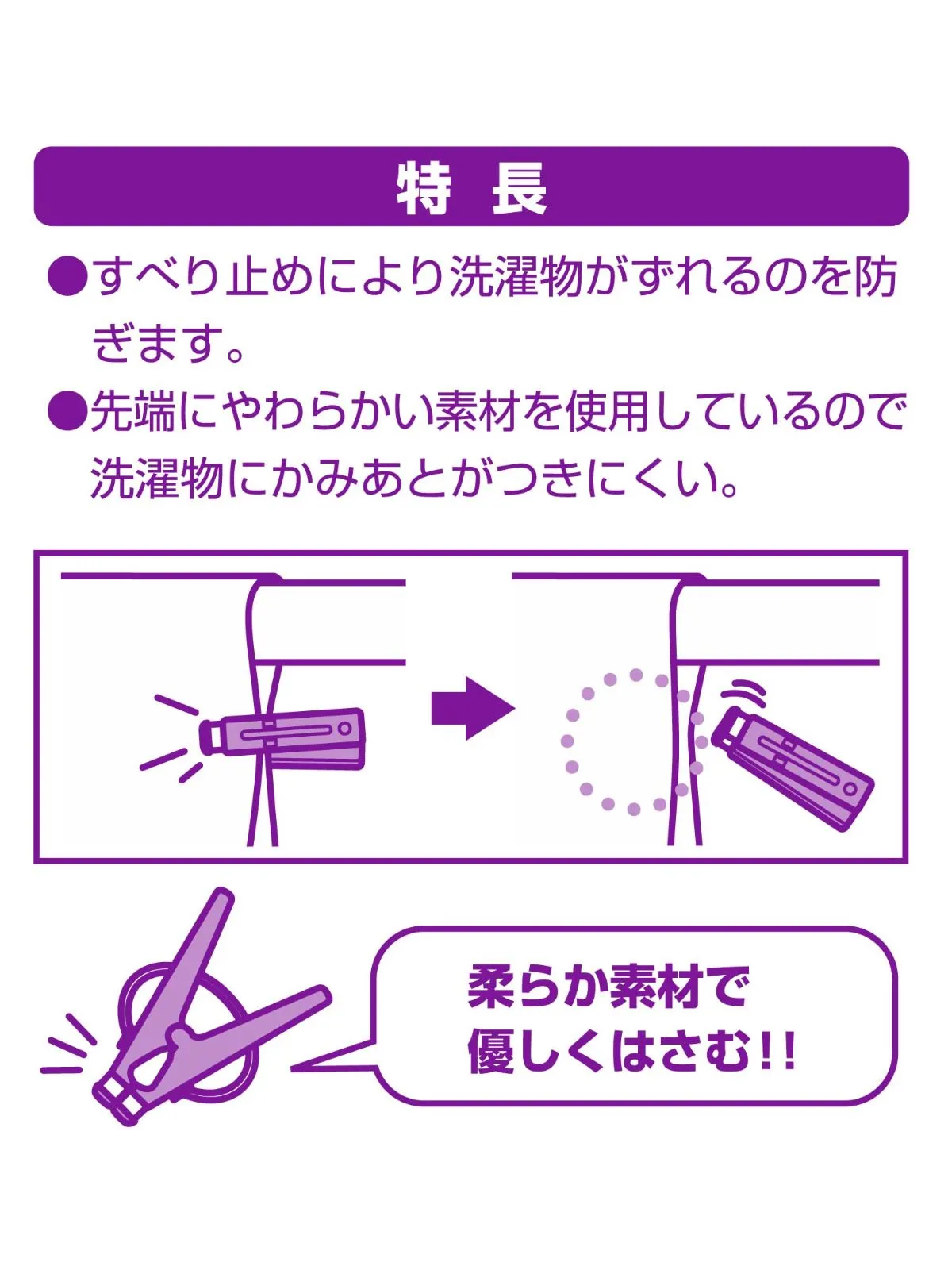 ソフト素材の滑り止めが付いた洗濯ばさみです。