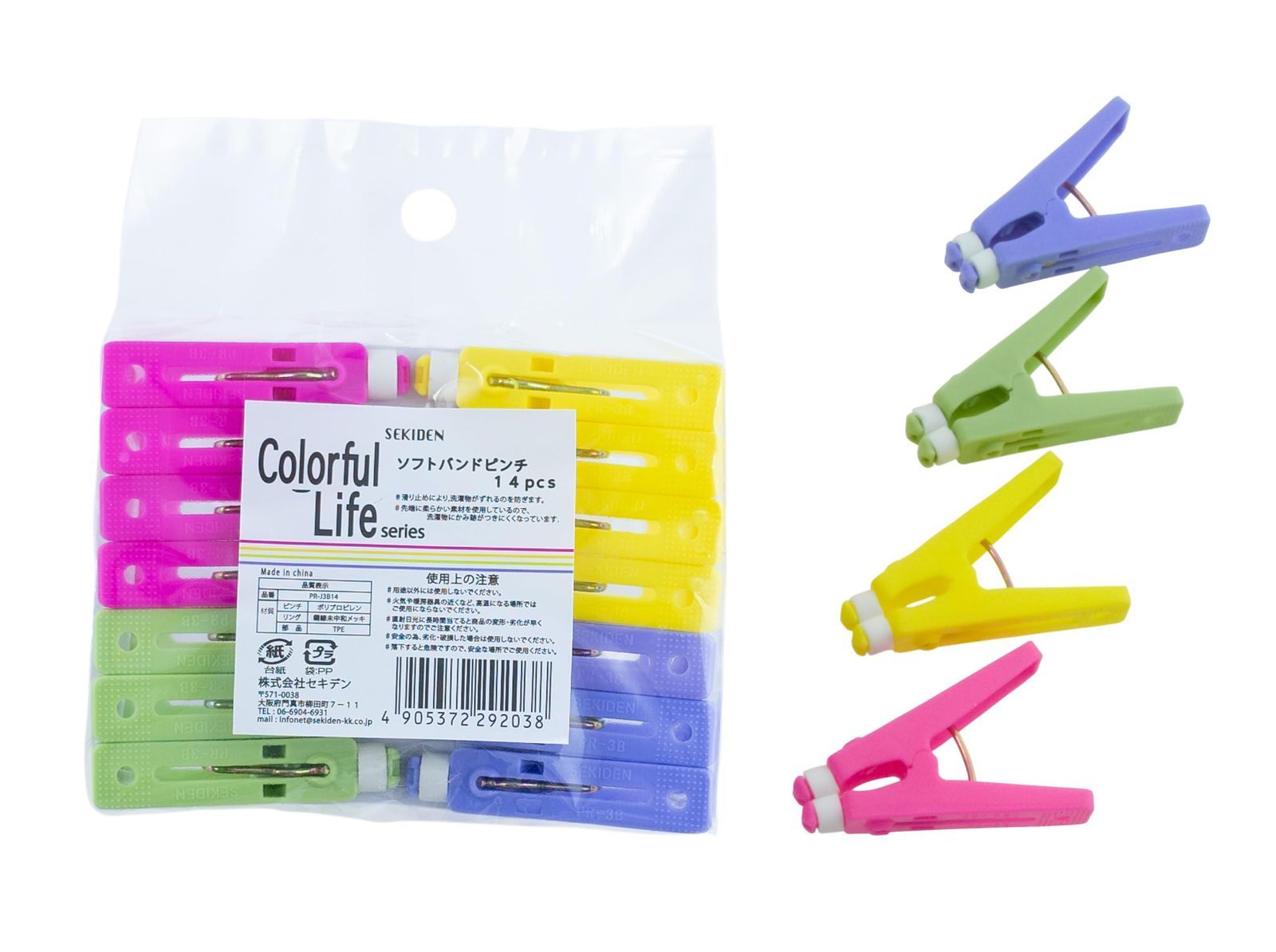 セキデン ソフトバンドピンチ14pcs 6セット 洗濯バサミ 跡がつきにくい ハンガー しっかりはさむ ズレ防止 エコクラフト まとめ買い