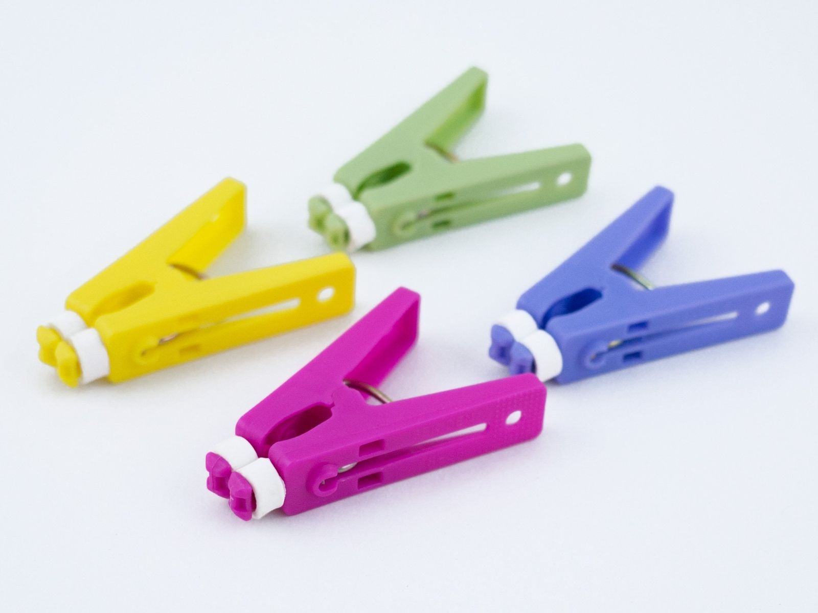 先端の柔らかい素材で洗濯物がずれるのを防ぎます。又、柔らかい素材により挟んだ跡が付きにくくなっています。エコクラフトの固定にも良く使用されています。