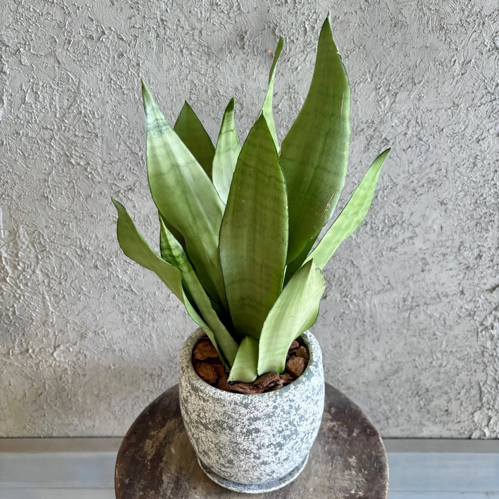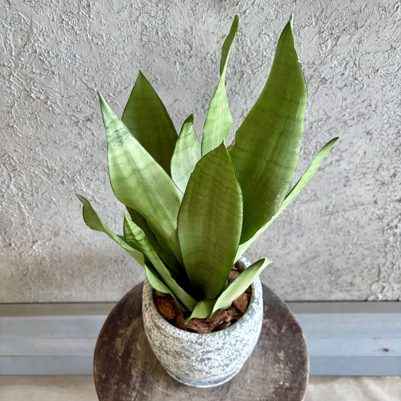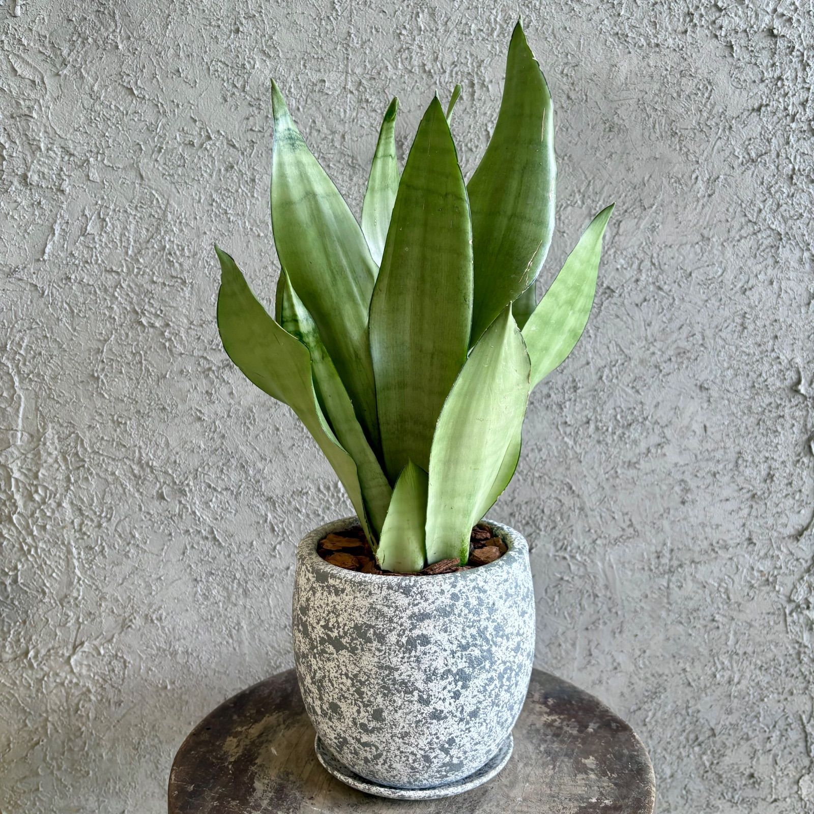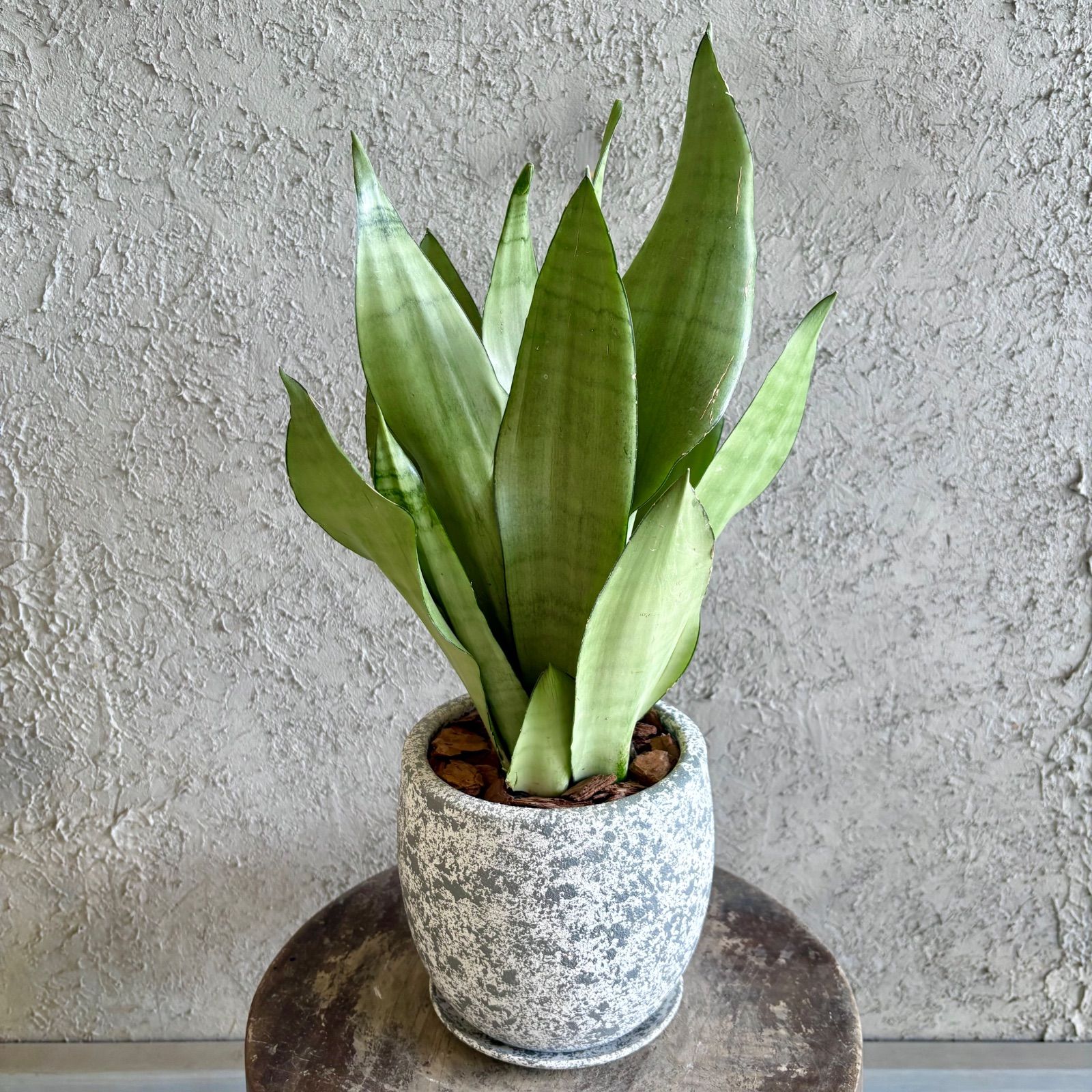 サンスベリア ムーンシャイン 5号 テラコッタ鉢植え オフホワイト 受け皿付き