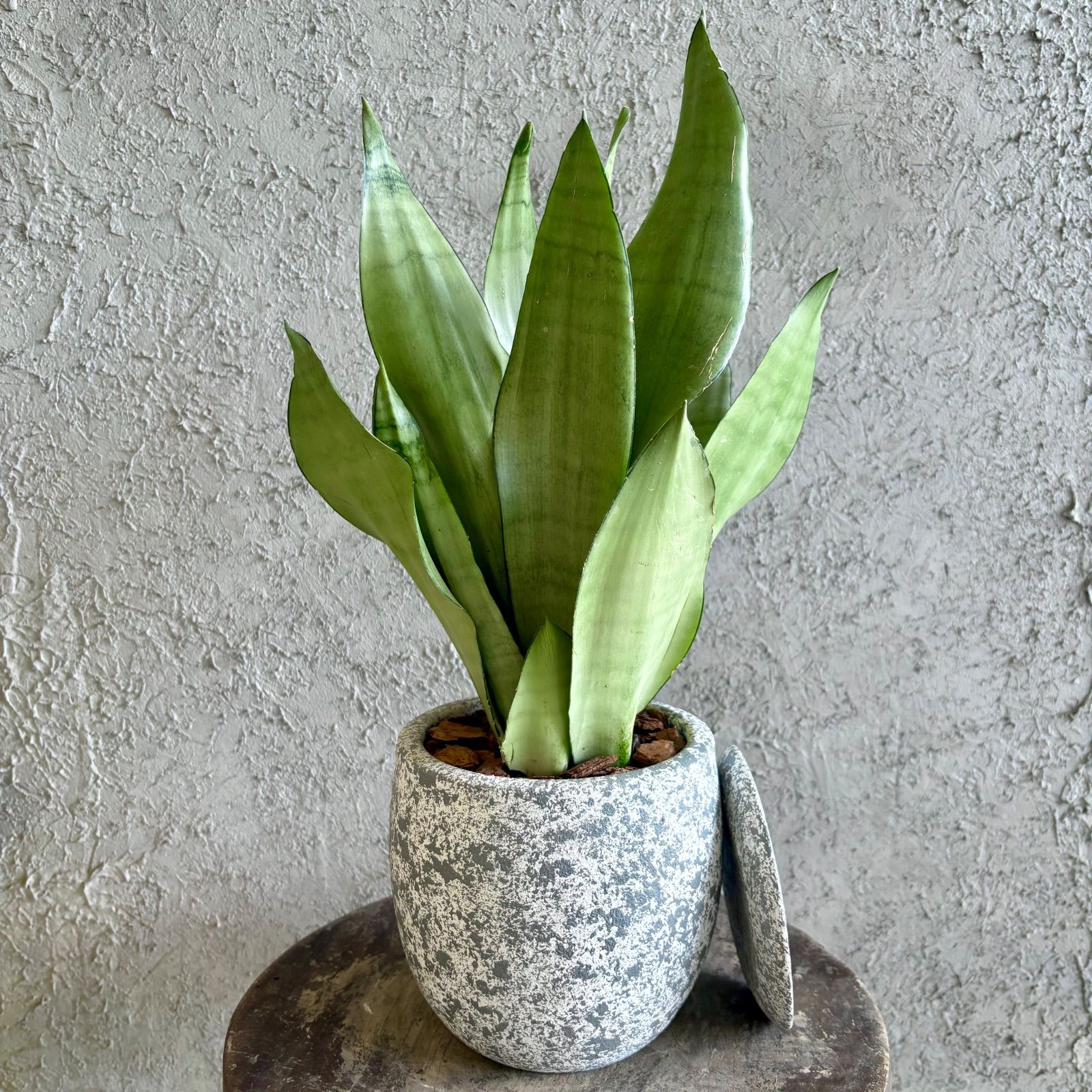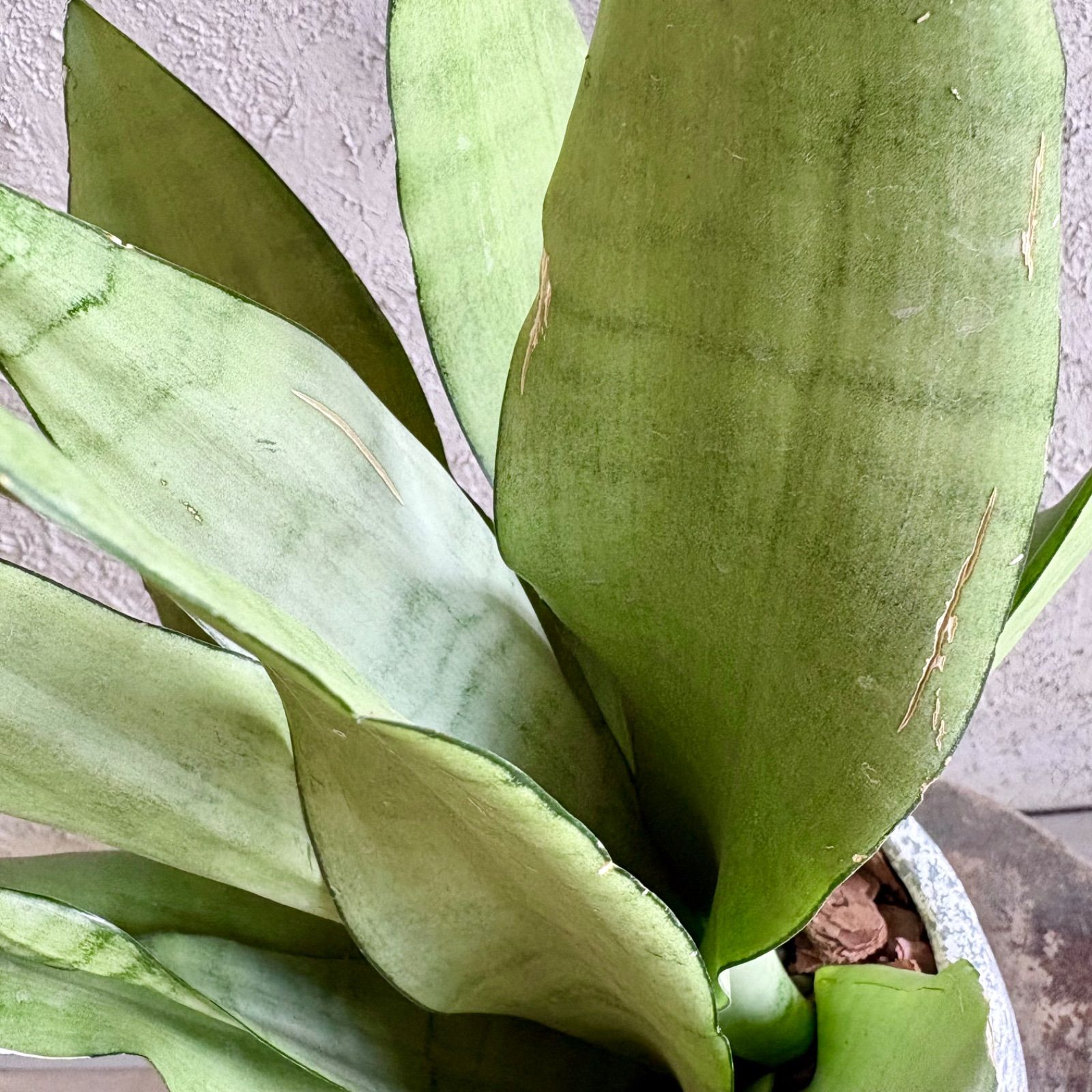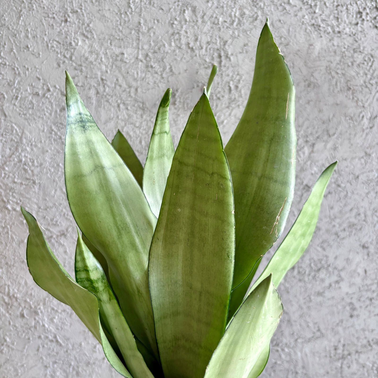 【植物について】 マイナスイオンを排出し、リラックス効果や空気清浄効果があるとされる多肉植物サンスベリア。 サンスベリア ムーンシャインは薄緑色と緑色の2色のコントラストがスタイリッシュな希少品種。光の当たり方によってシルバーがかって見えるのが特徴で、インテリアグリーンとしておすすめの品種の一つです。