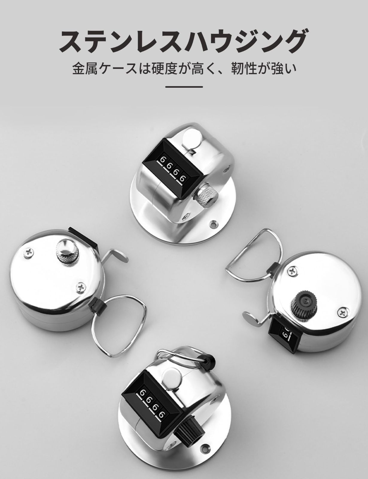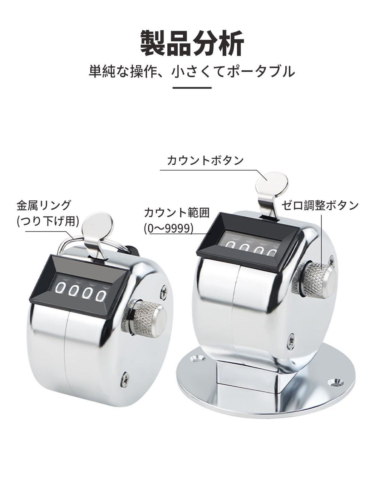 【持ち運びに便利】手持型カウンターは小さくて軽い、片手でリングに人差し指をかけて、手にしっかりと握る可能なので、計測は快適です。各カウンターは非常に小さく、手やポケットに入れやすく、持ち運びや使用に便利です。