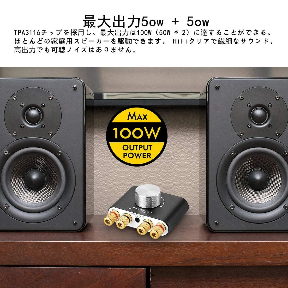 Nousoundの特製チップを採用され、最大パワーは100W(50*50W)になり、 ほとんどの家庭用スピーカーを簡単に駆動ですます。HIFIのクリアで繊細のサウンドで、大音量でもノイズがほぼありません。
